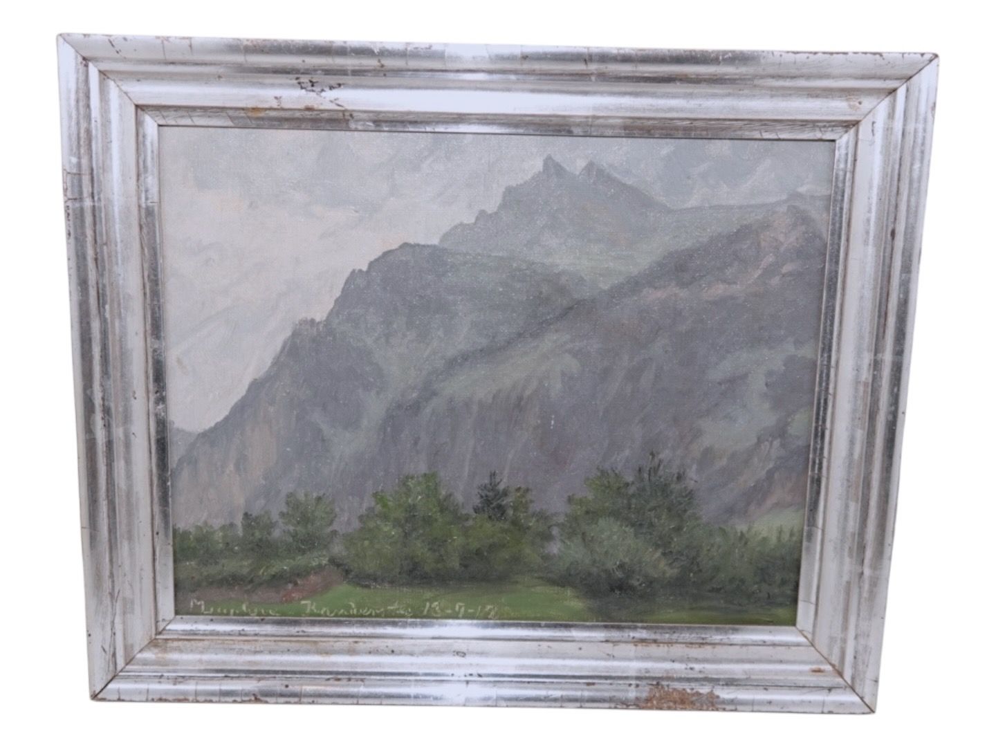 The painting depicts a mountain formation, probably from one of Luplau's many trips abroad. Luplau often painted landscapes from Southern Europe. She has, among other things, painted mountain landscapes near Lake Geneva in Switzerland and at Lake Garda in Italy.