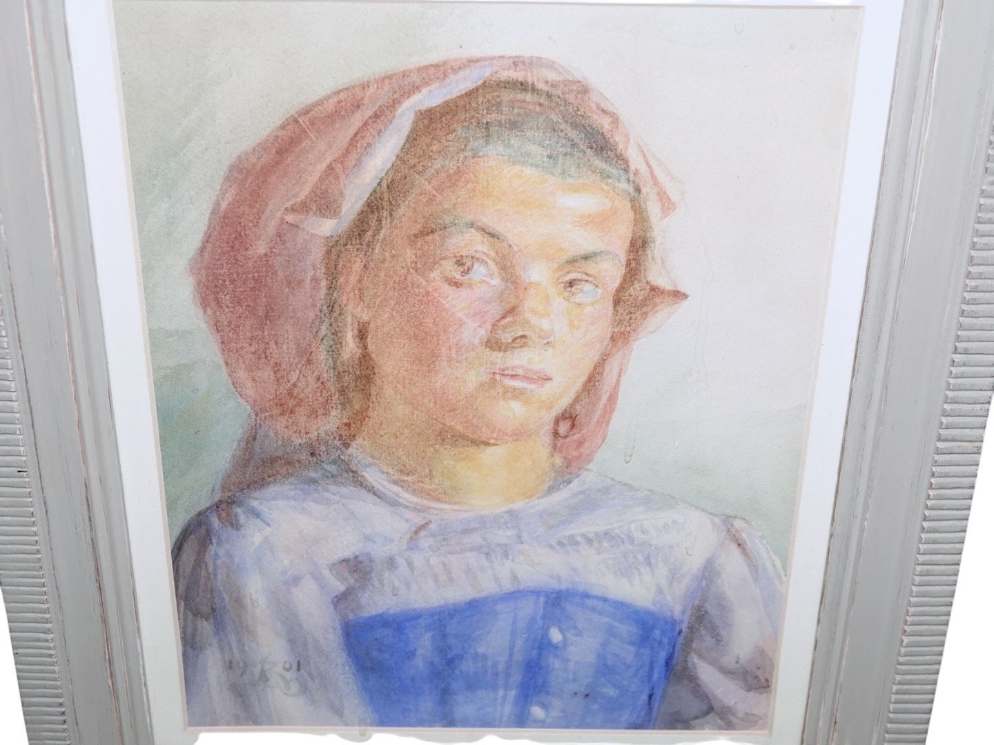 Kristian Zahrtmann (1843–1917), watercolor of an Italian woman in a gray painted wooden frame and mounted with glass.The painting is signed and dated 1901.