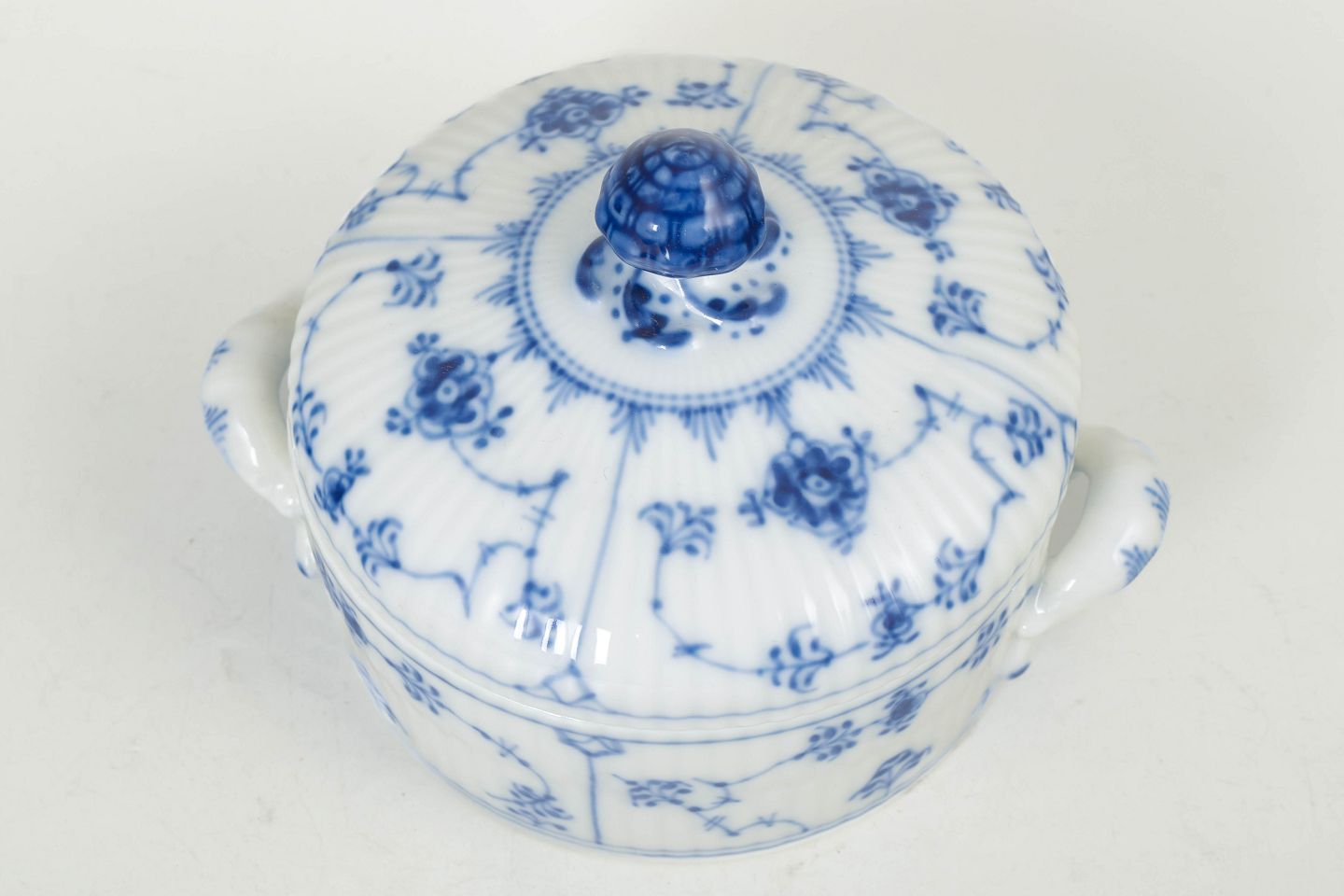 Classic sugar bowl in white porcelain with hand-painted blue Blue Fluted Plain decoration, model 1/400 from the 1970s, 1st quality.