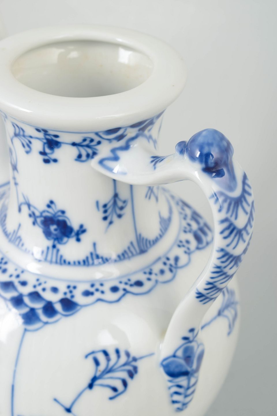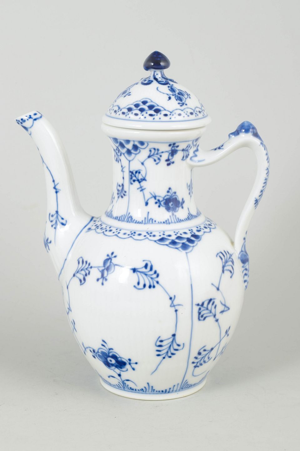 Royal Copenhagen Blue Fluted Plain coffee pot.Classic coffee pot in white porcelain with hand-painted blue Blue Fluted Plain decoration, model 1/519 from the 1970s, 4. quality.