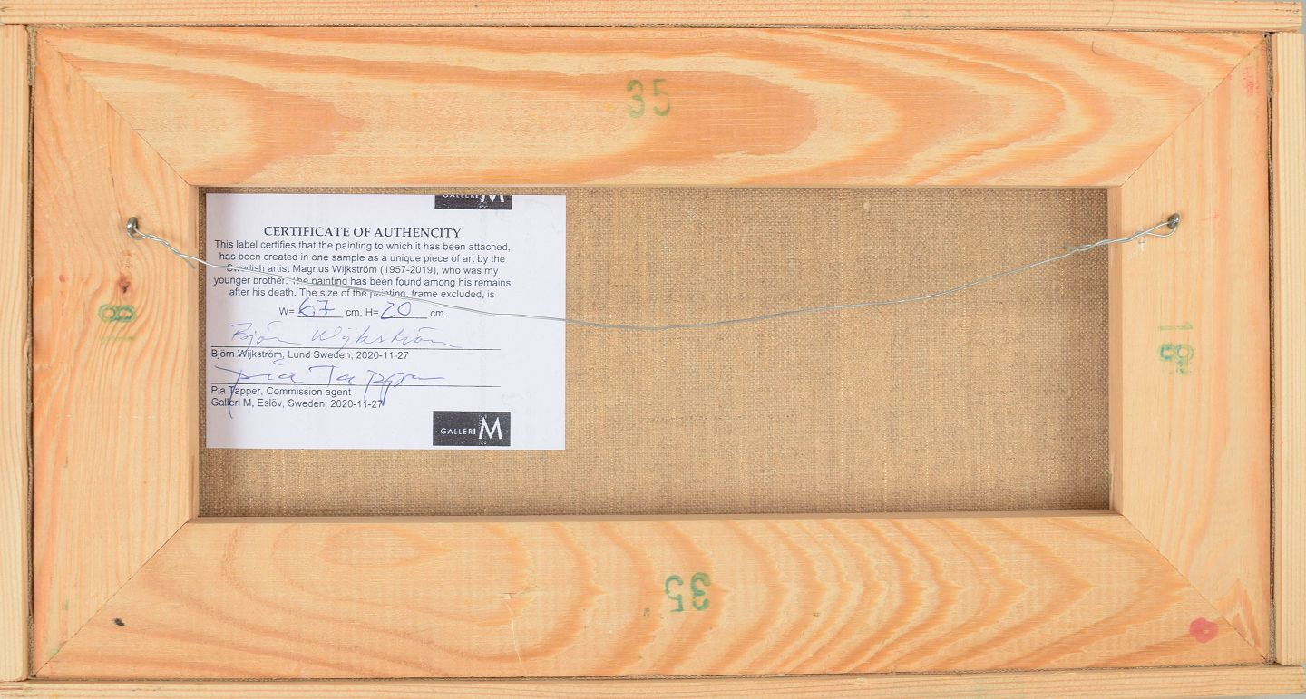Magnus Wijkström (1957–2019) was a Swedish artist raised in Eslöv. He studied at Pernbys Målarskola in Stockholm before being admitted to Valand Academy of Fine Arts in Gothenburg in 1983, where he trained for five years. After completing his education, he settled in Malmö and pursued a career as an artist. His work is characterised by geometric motifs and strong colour combinations, often exploring expressive and experimental compositions. Despite a reserved personality, he exhibited both in Sweden and internationally and gained recognition over time.