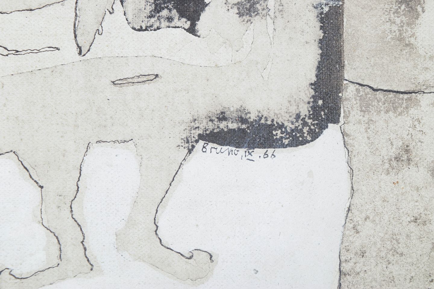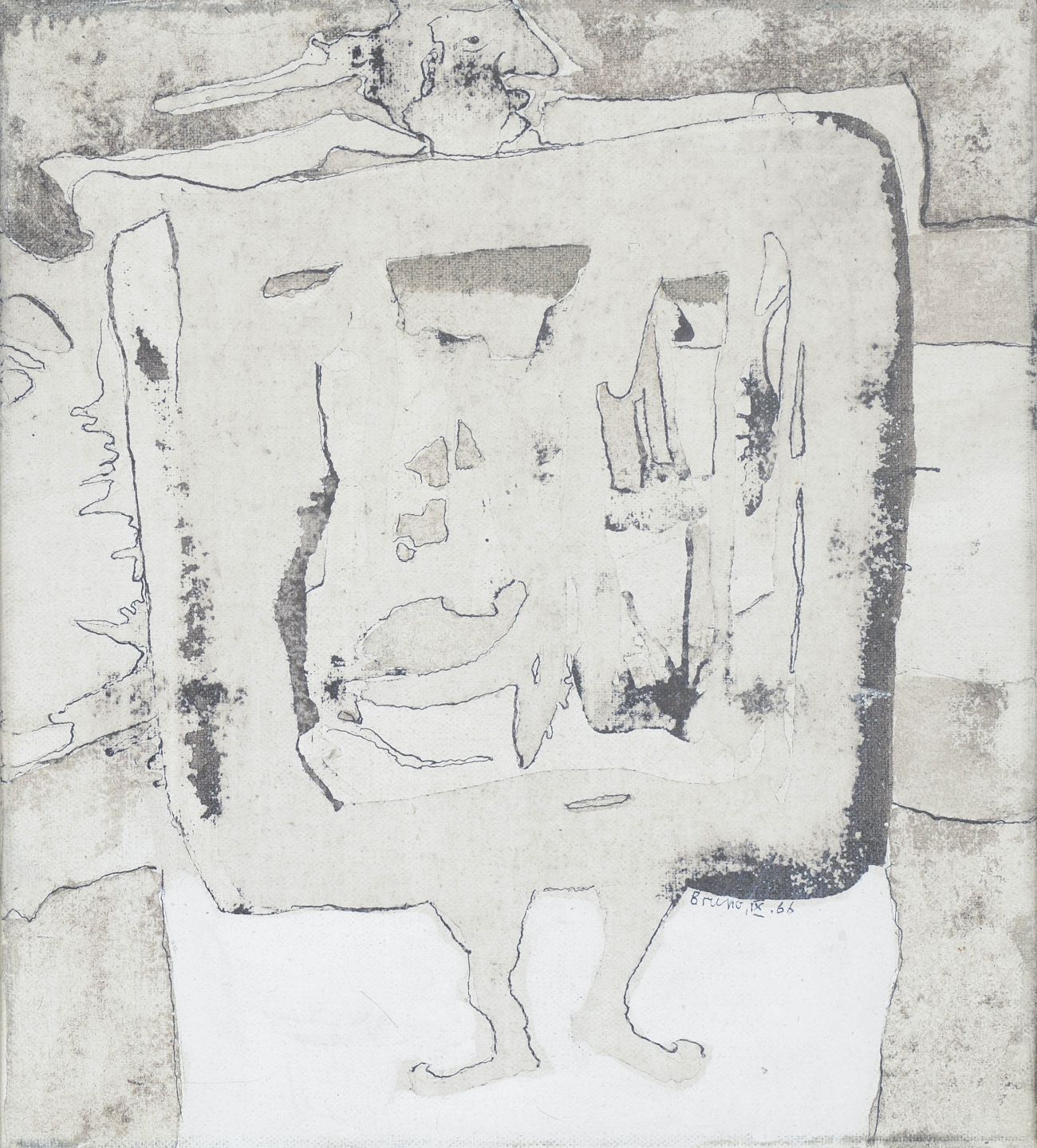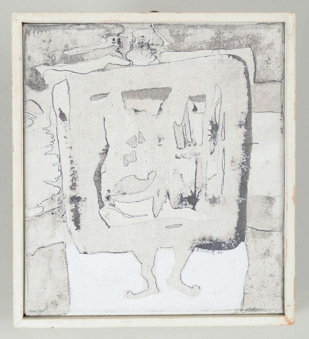 German painter, abstract oil on canvas.Abstract composition executed in oil on canvas with subdued grey tones and organic forms. Signed Bruno 66.