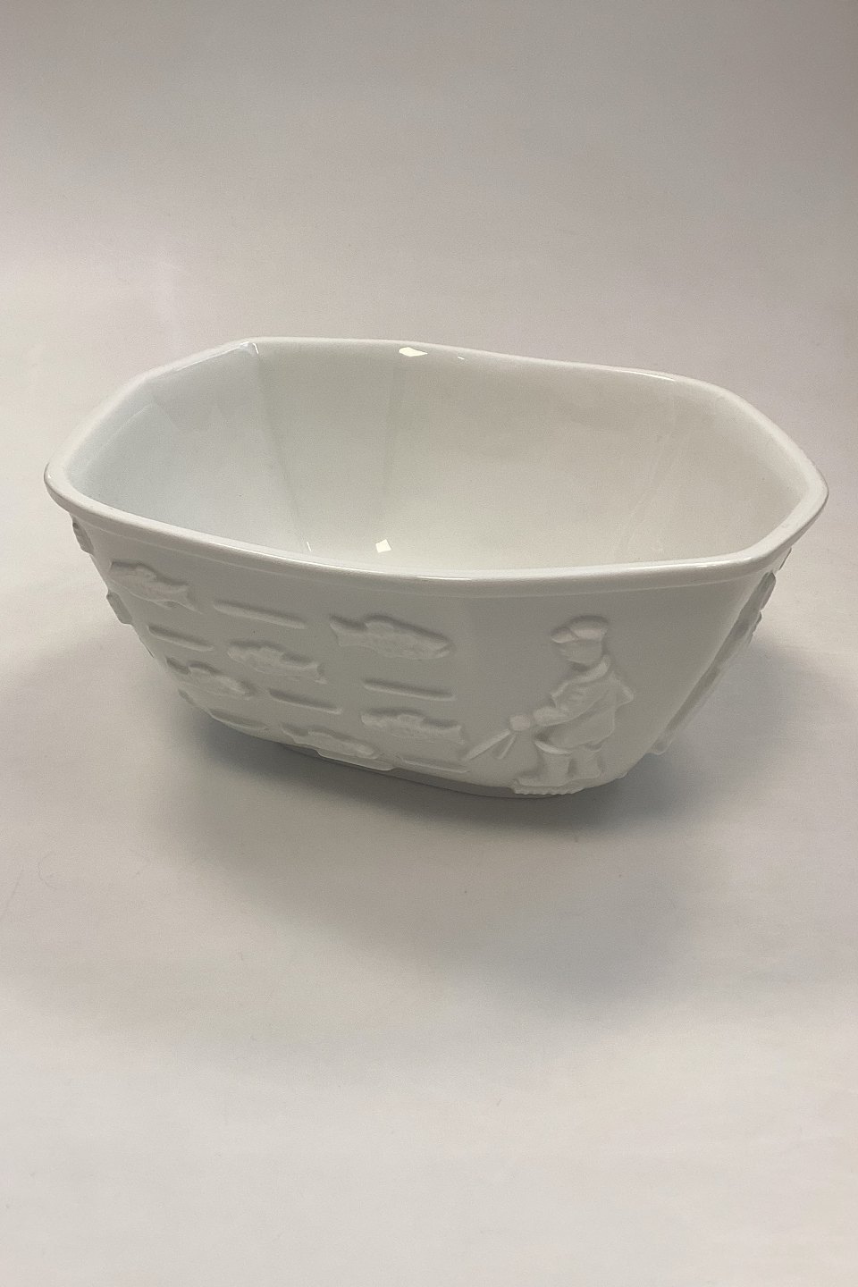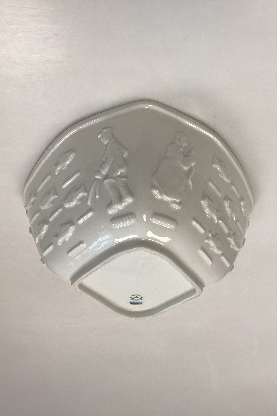 Royal Copenhagen Blanc de Chine Bowl by Bode Willumsen No. 4085With motifs of fish and fishermen/women.