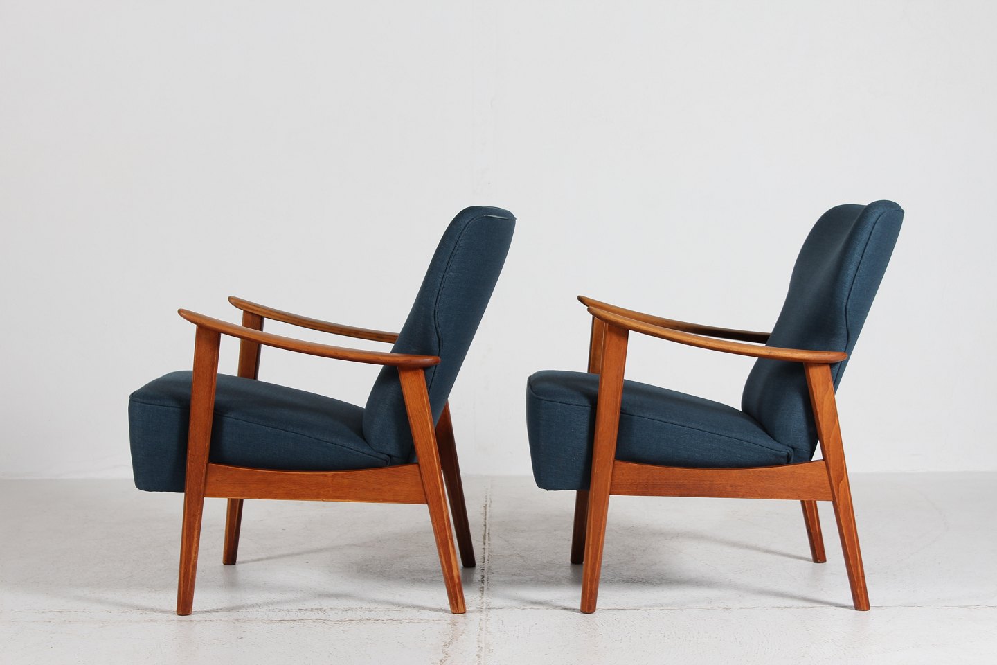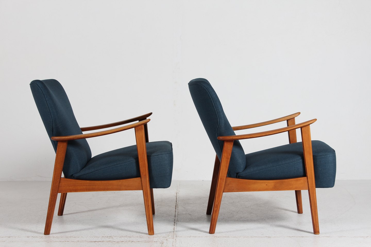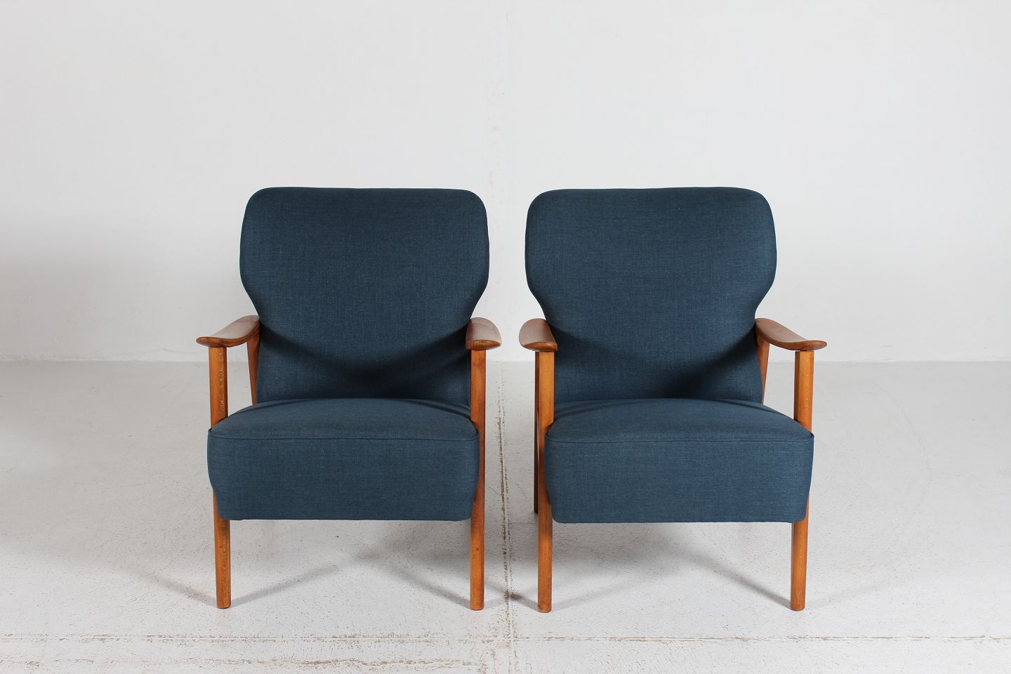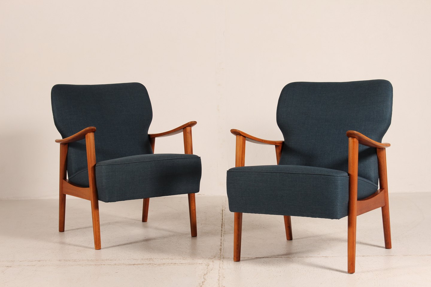Fritz Hansen A/SPair of easy chairs with frame of beech upholstered