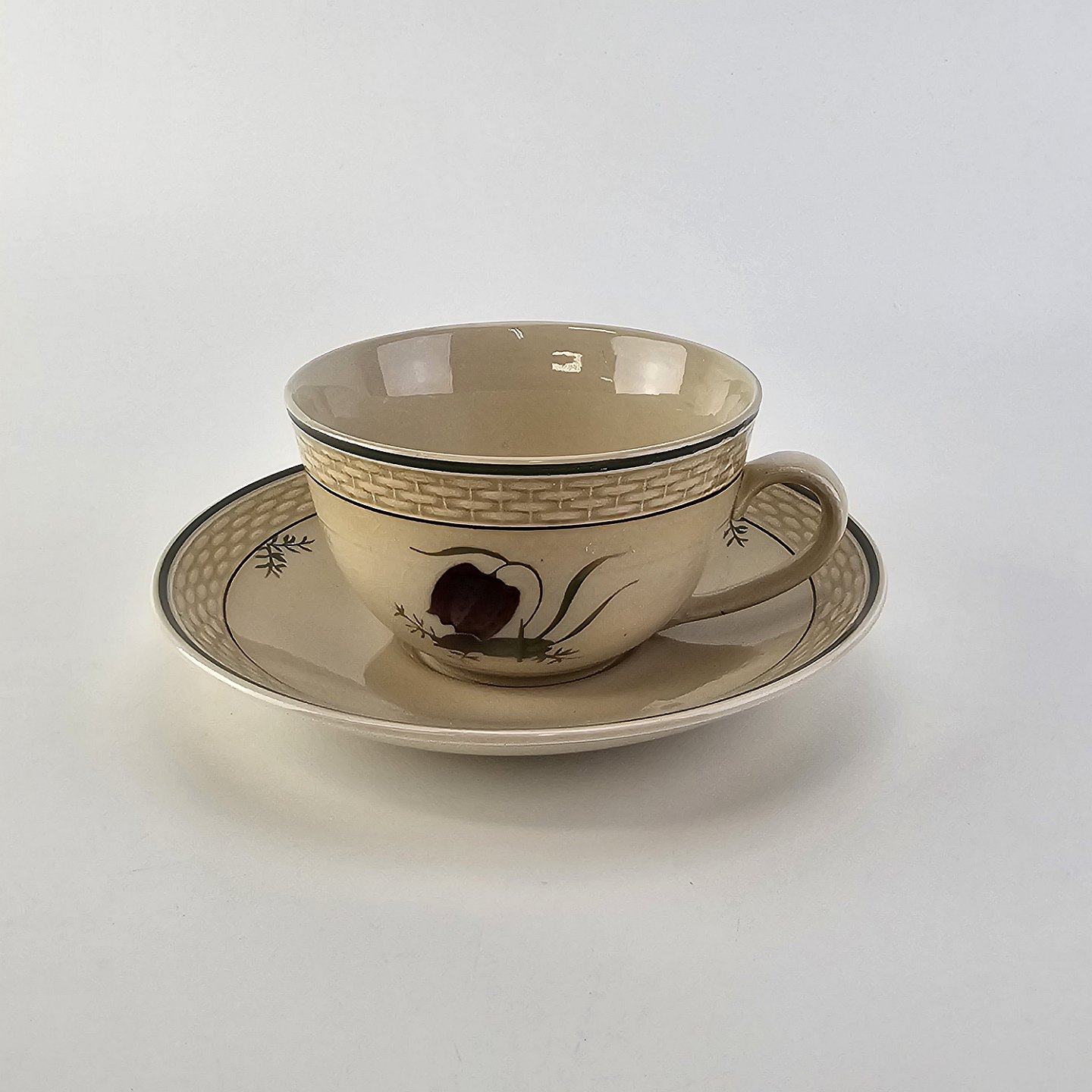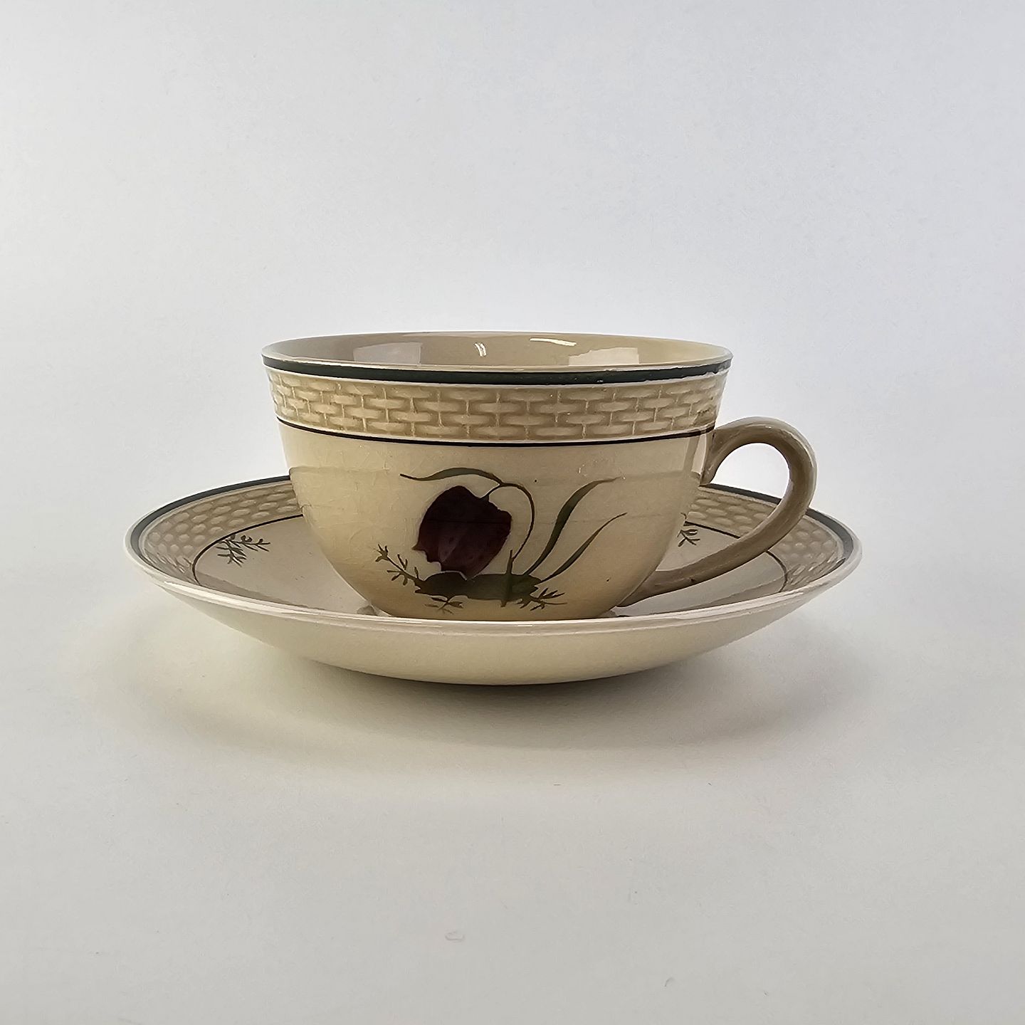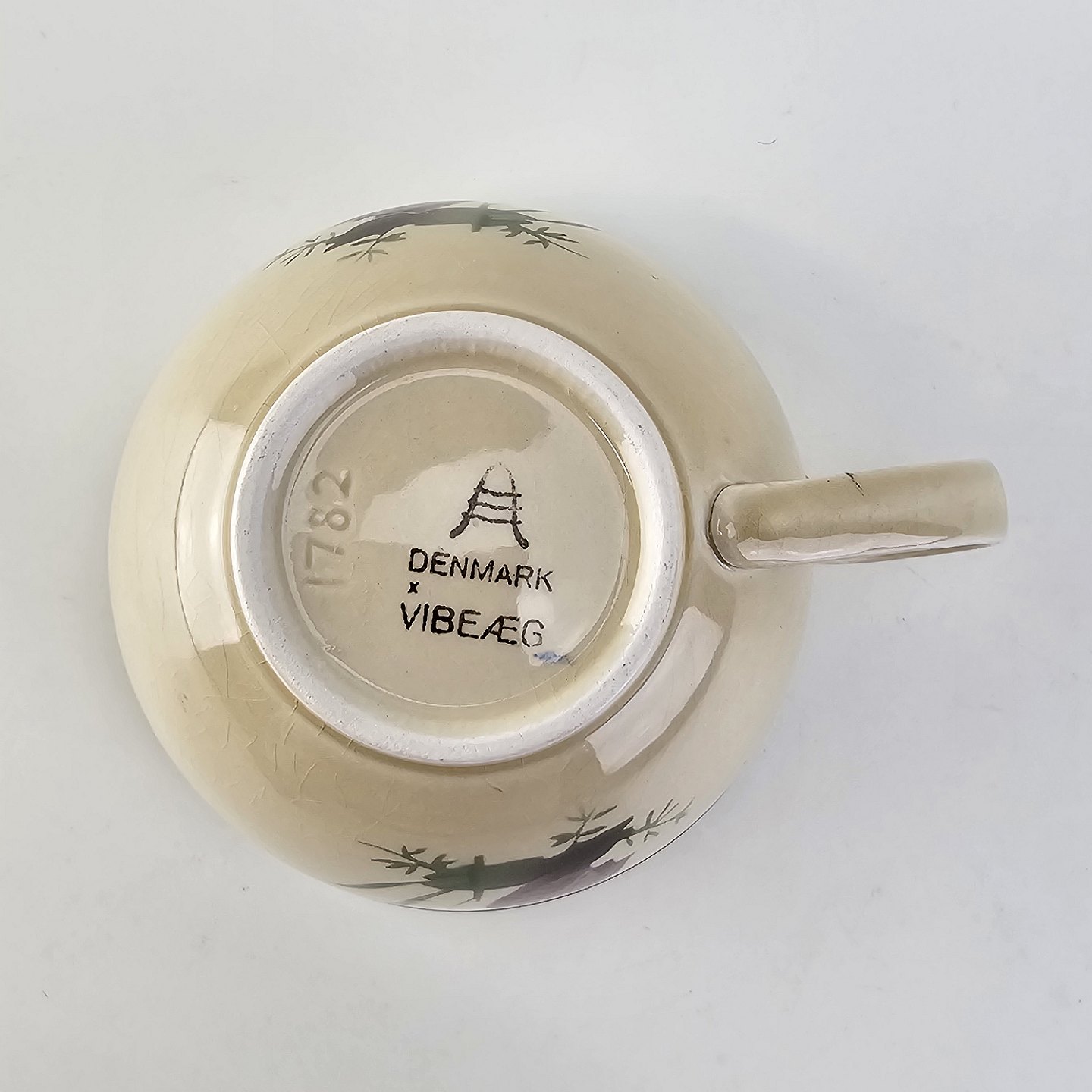 Tekop med underkop i fajance fra stellet Vibeæg Nr. 1782