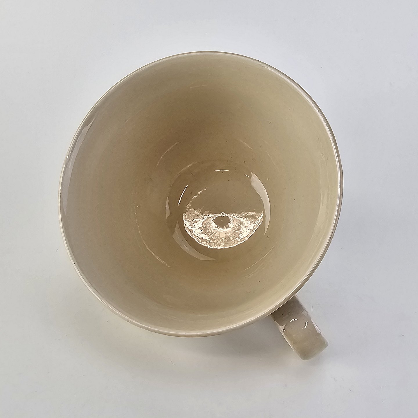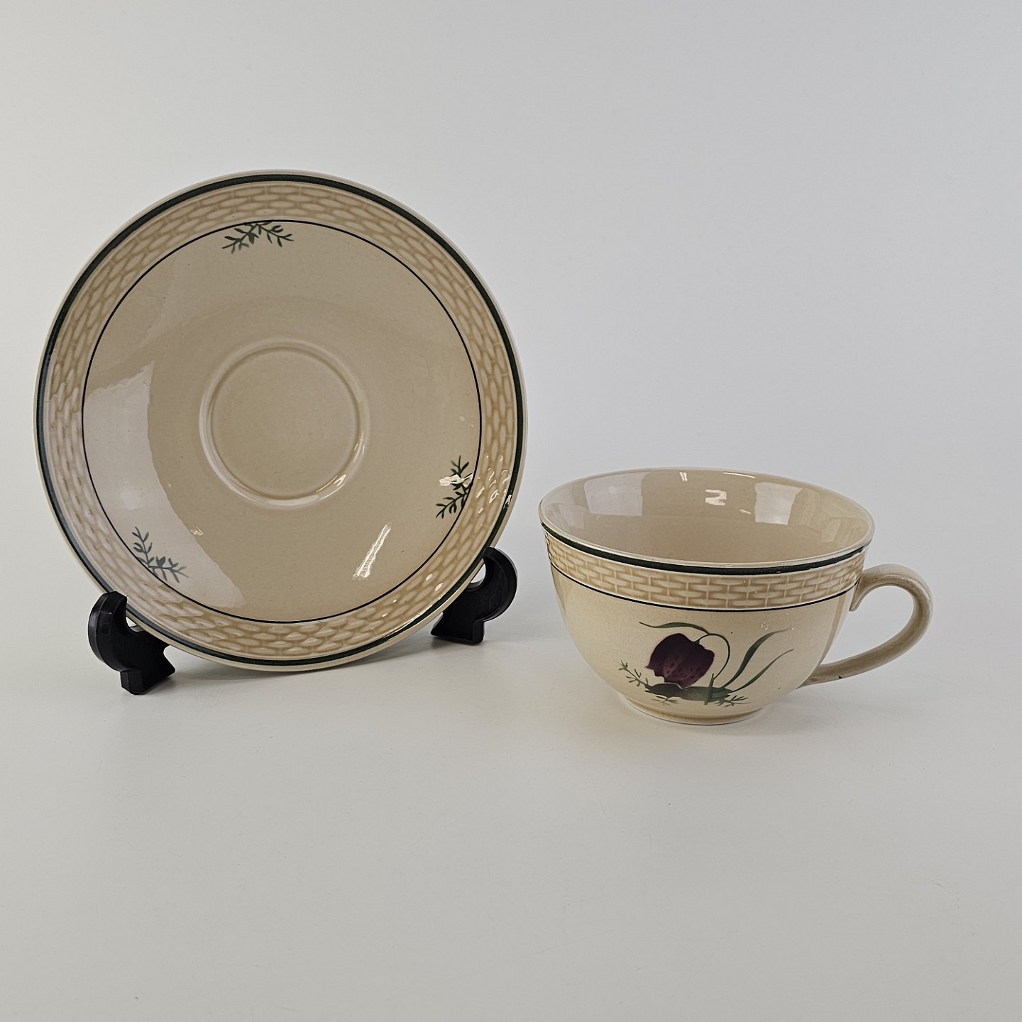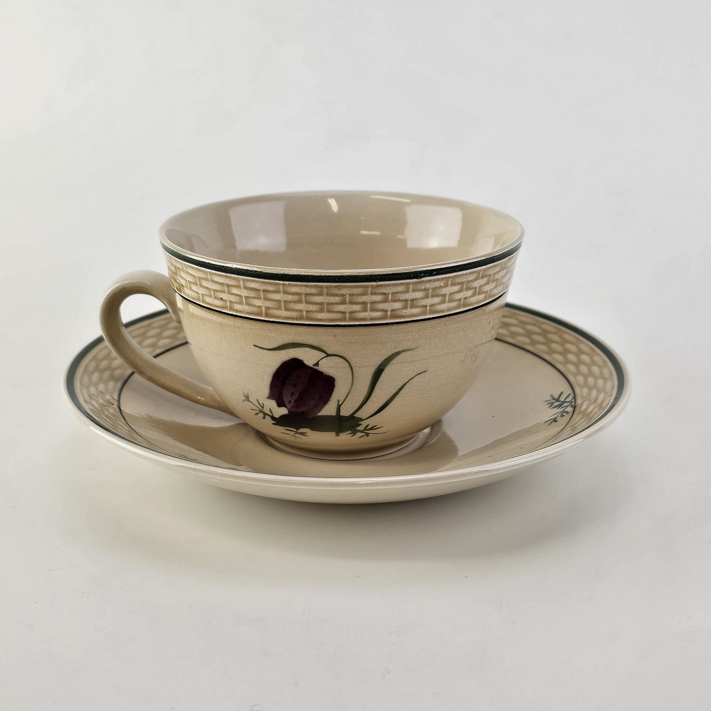 Tekop med underkop i fajance fra stellet Vibeæg Nr. 1782