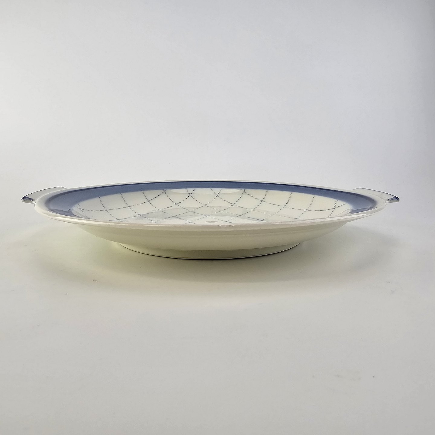Rundt fad med hanke af porcelæn fra stellet Prik 25Producent Bing & Grøndahl
