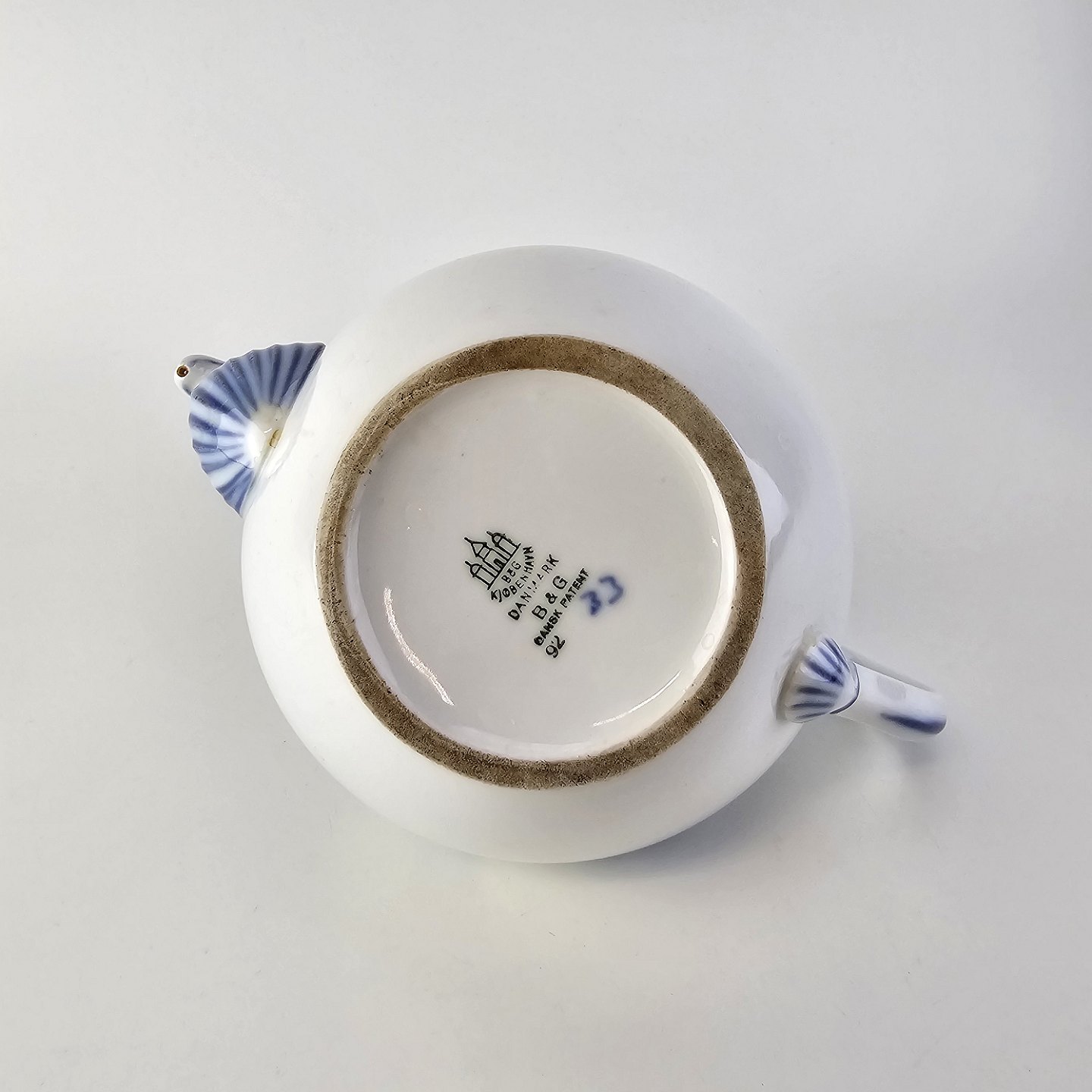 Empire er hvidt porcelæn med skelform og motiv af guirlander med blå blomster