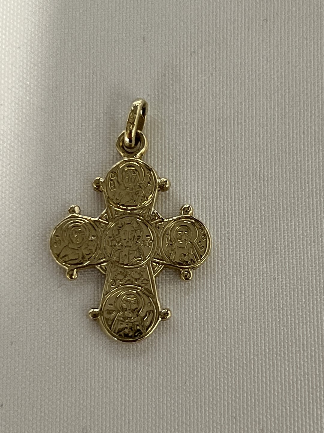 Beautiful Day of the Dead cross in 14 carat gold, with the suffering Christ on the front and the 5 "big ones" on the back. The Day of the Dead cross is a traditional and classic necklace, often given as a baptism or confirmation gift.This small cross is made with attention to detail, and will fit ideally on a thin gold chain.