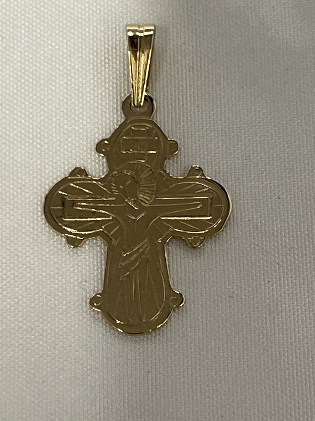 Elegant Day of the Dead cross in 14 carat gold, stamped HS 585. Beautiful details.