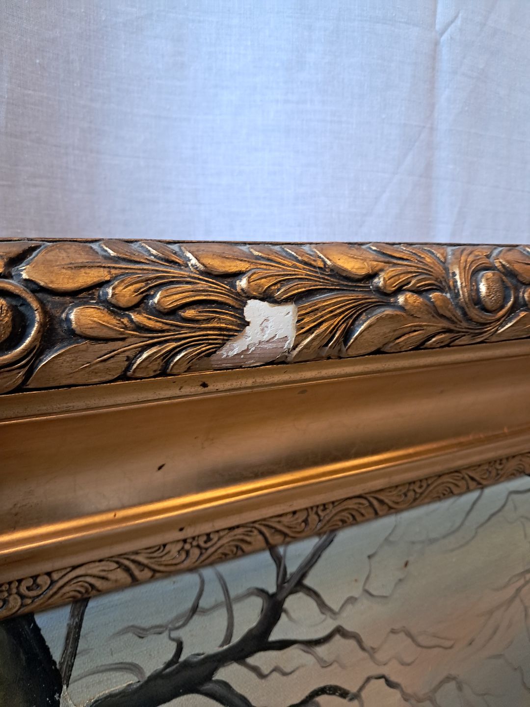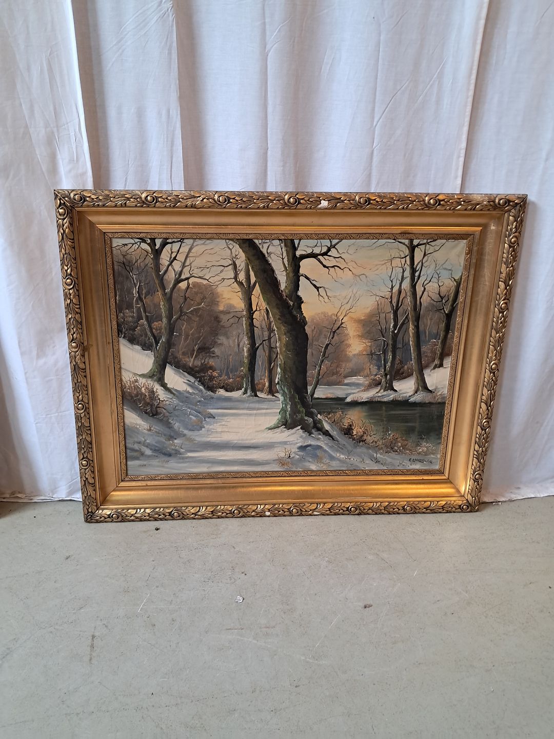 Maleri i guldmalet ramme, fra 1930erne.Det har brugsspor.