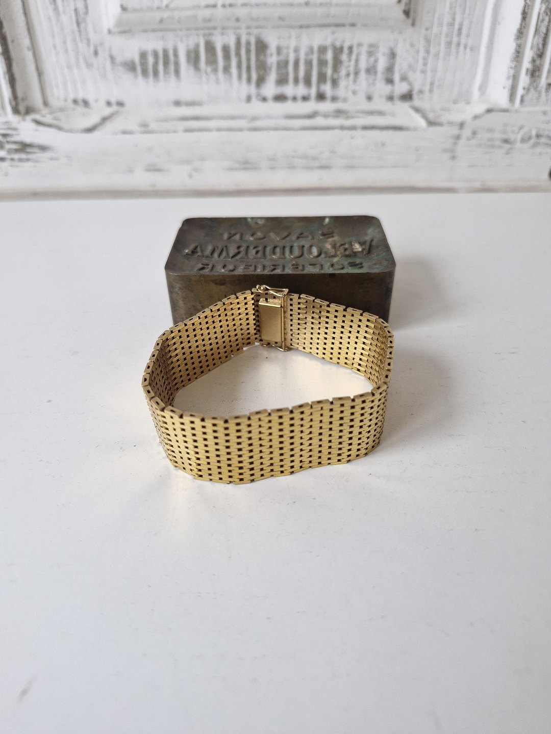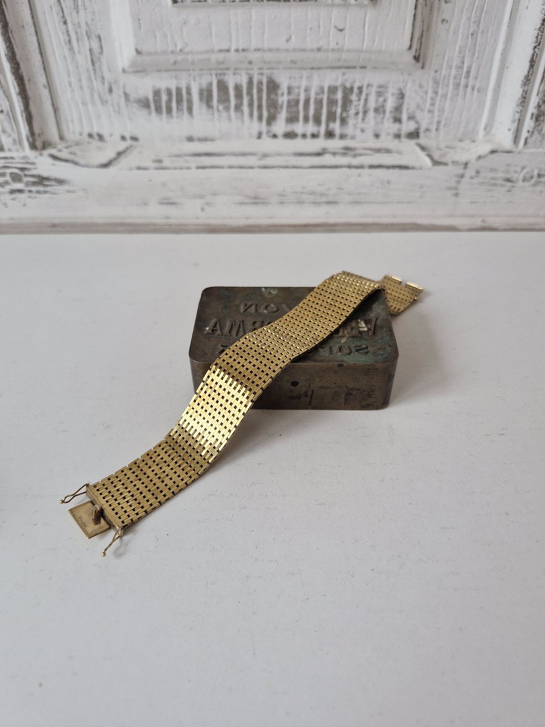 Vintage brick bracelet 21 rows in gold-plated metalStamp: Double