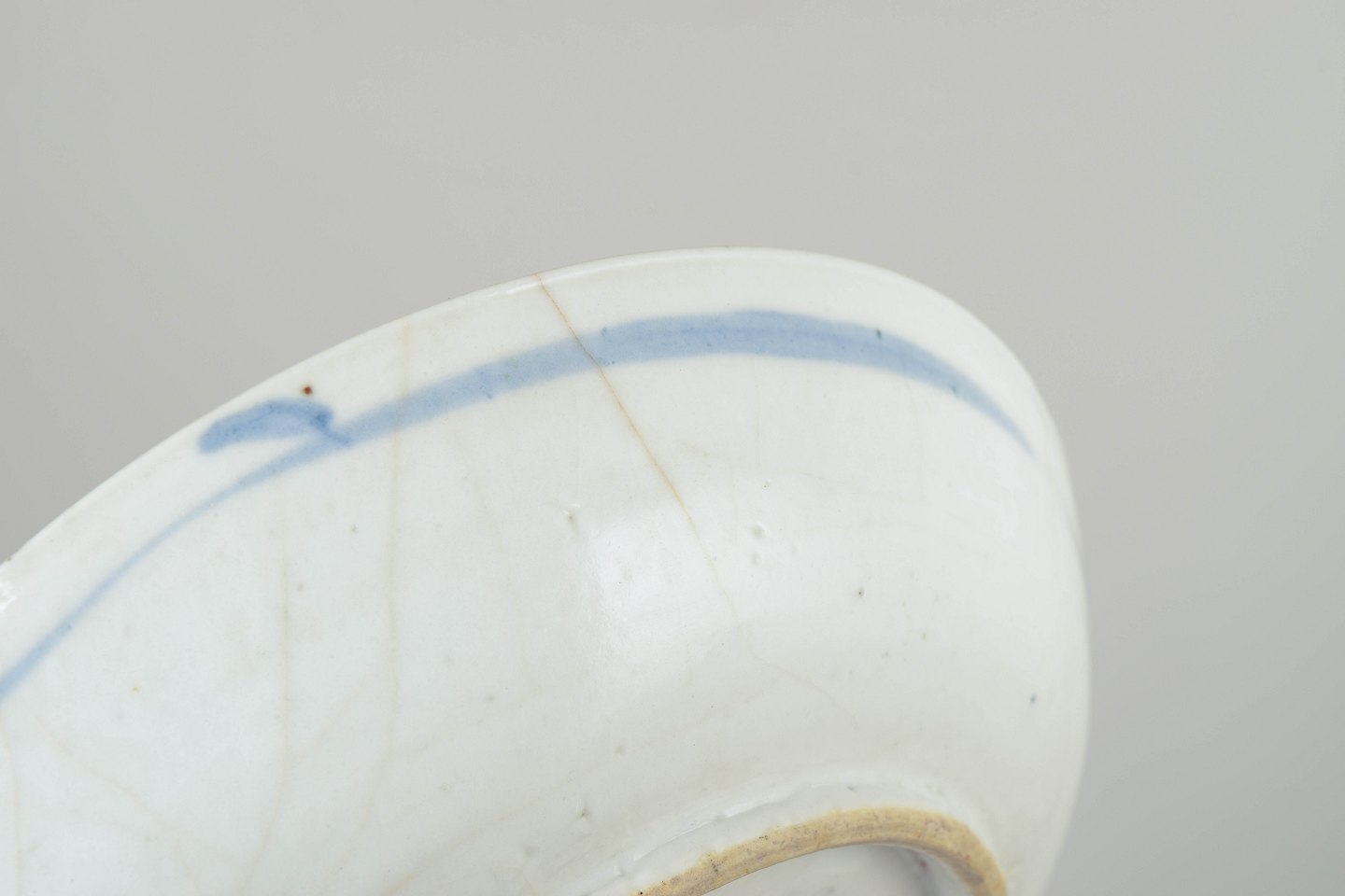 Chinese bowl in Ming style.Circular porcelain bowl decorated in underglaze blue with stylised floral and circular motifs. Unmarked.