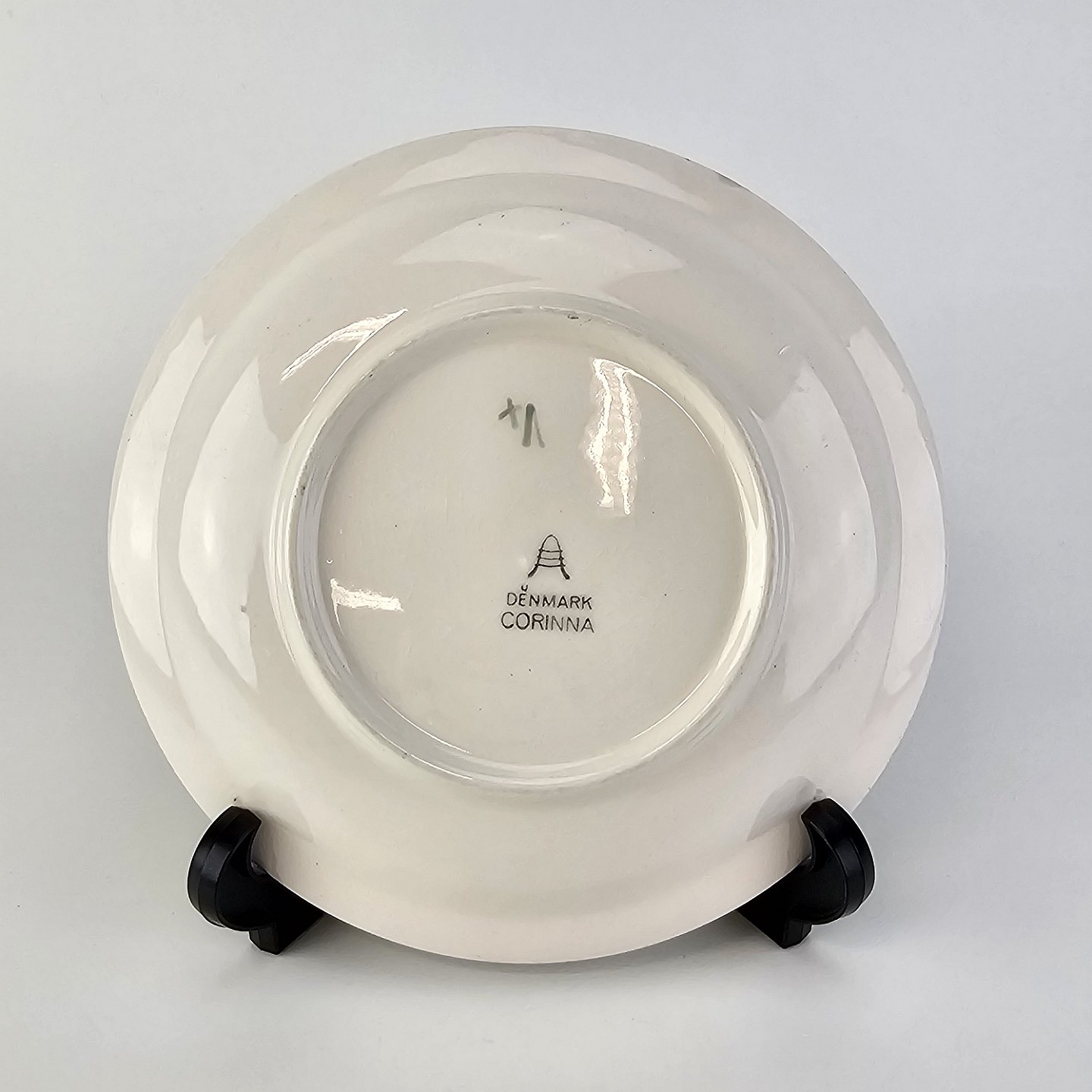 Tallerken i fajance fra stellet Corinna fremstillet i perioden 1937-1966