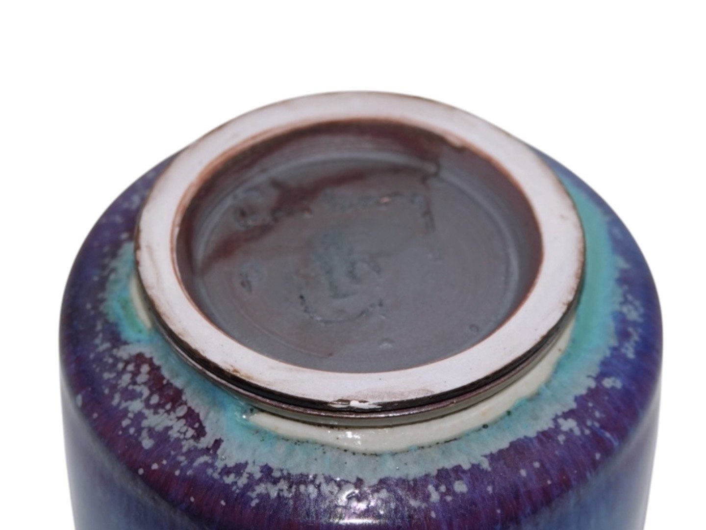 Gustavsberg Studio Sweden art pottery, small Berndt Friberg blue vase with aniara glaze.Signed "Friberg".