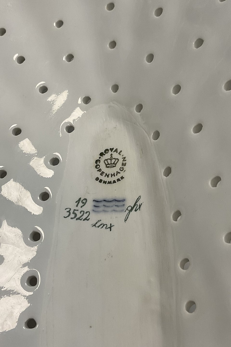 Royal Copenhagen Flora Danica Fish Drainer for Fish platter No 19/3522. Measures 36 cm / 14 11/64 in.Stock: 1