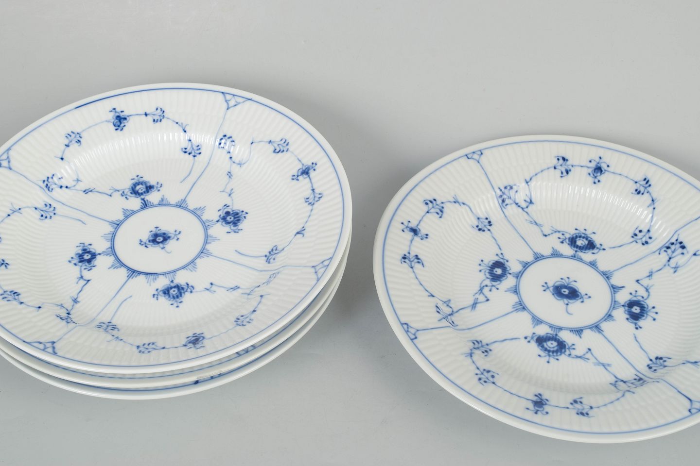 Royal Copenhagen Blue Fluted Plain, set of four dinner plates.Classic set of four dinner plates from Royal Copenhagen’s Blue Fluted Plain service, model 1/175, crafted in hand-painted porcelain with the iconic cobalt blue pattern. The plates represent varying factory qualities and showcase the timeless elegance that has made this service a Danish design classic.
