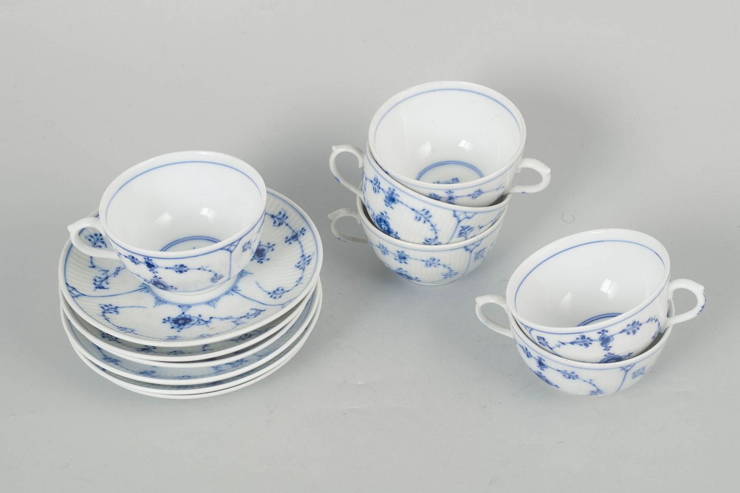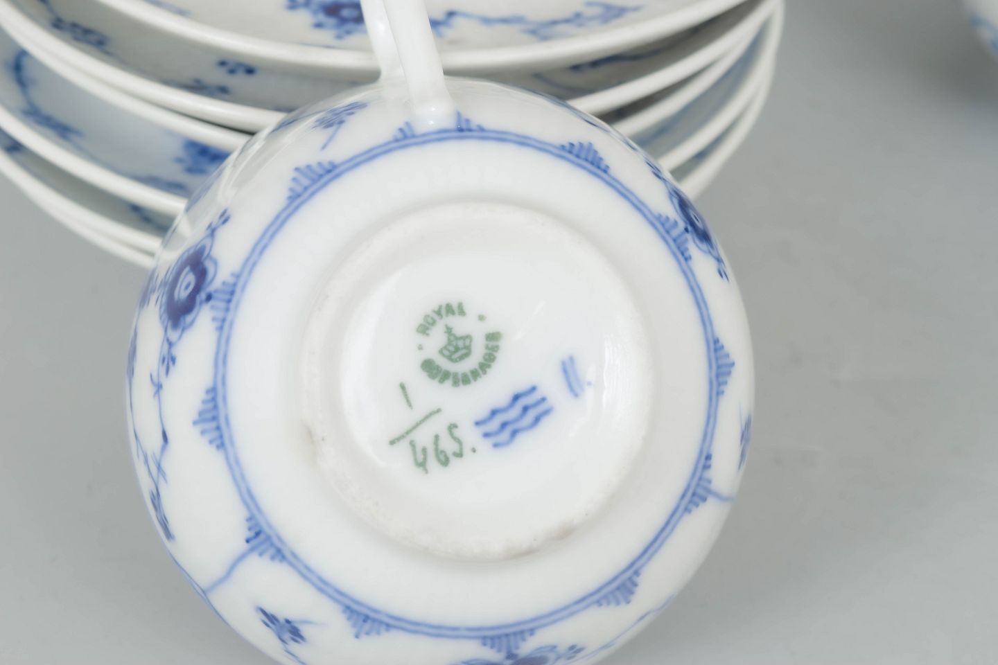Dimensions: Cups H. 5 cm, D. 10 cm. Saucers D. 13 cm.