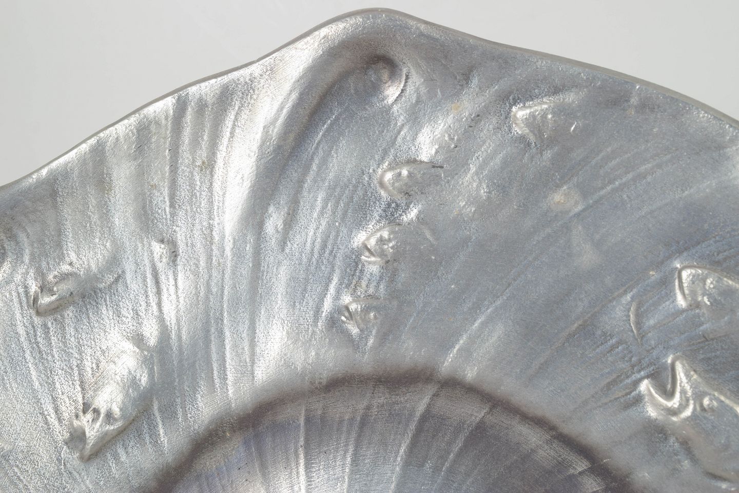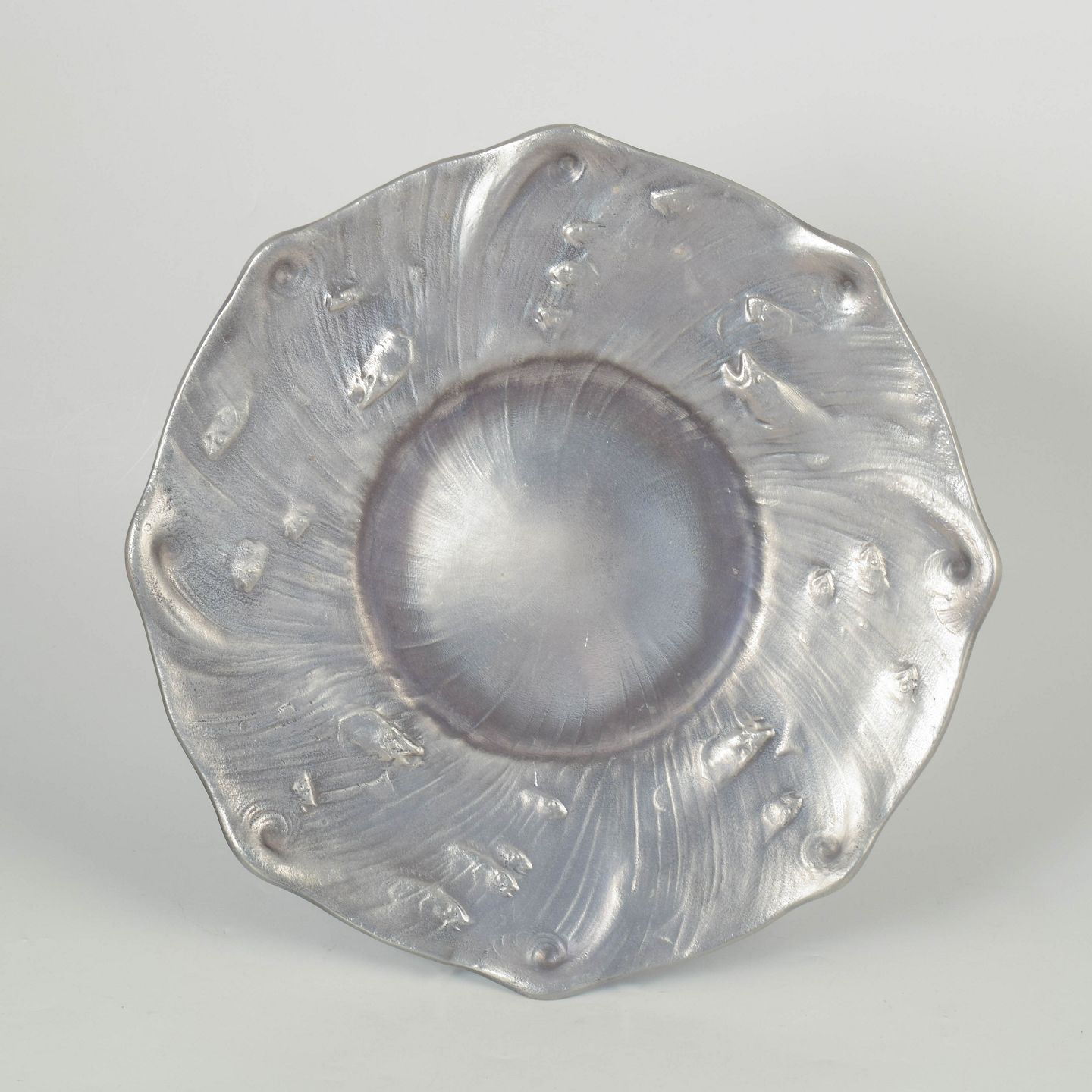 Olof Ahlberg for Schreuder & Olsson, large art nouveau dish.Large decorative pewter dish with an organic flowing form and fish relief decoration, produced for Schreuder & Olsson, Stockholm.