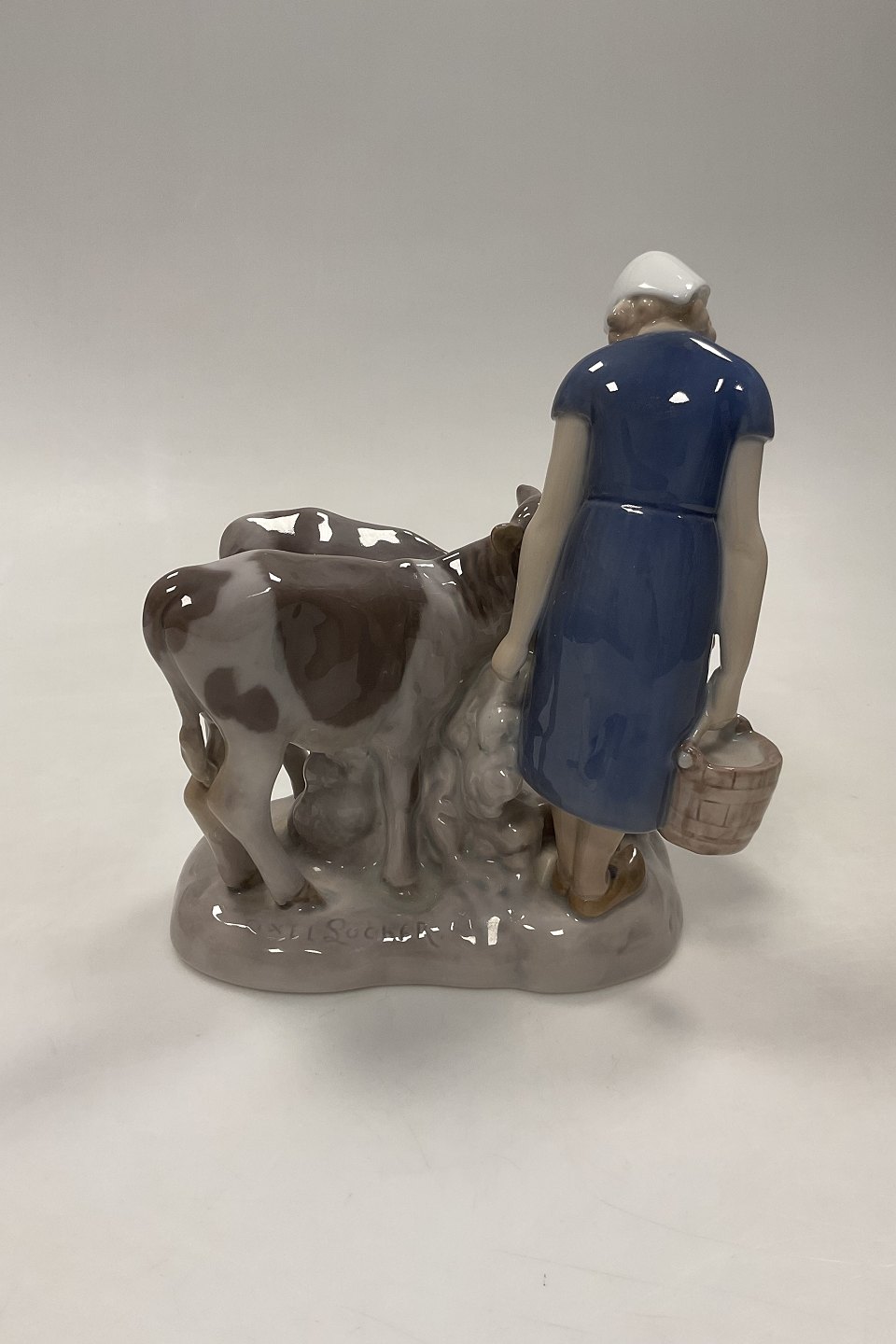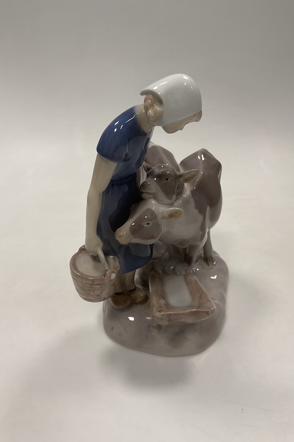 Bing and Grondahl Figurine Girl with Calfs No. 2270. Measures 21 cm / 8 17/64 in. and is in good condition. Designed by Axel Locher.Stock: 1