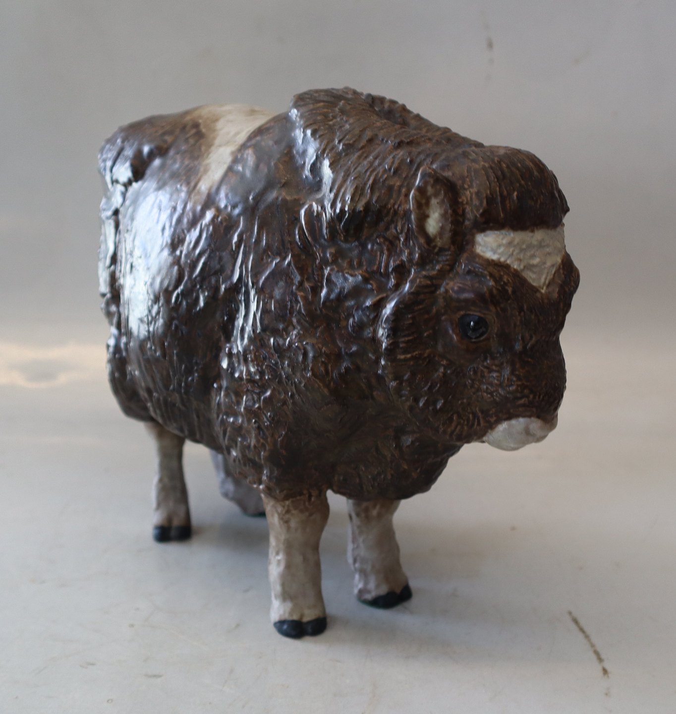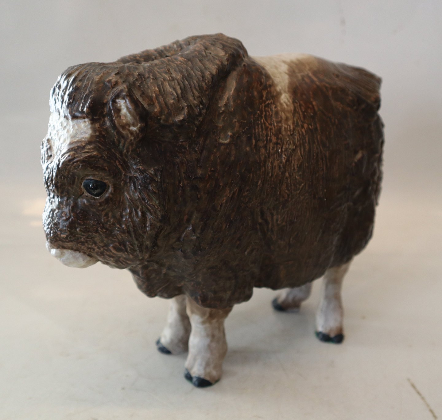 Royal Copenhagen Aluminia Faience figurine. 3149 RC Faience Musk Ox calf Jeanne Grut ca. 22 x 26 cm glazed MoskusokseBison Buffalo