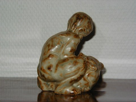 Rare Royal Copenhagen Figurine of Faun/boy playing with Bear Cub signed by Knud Kyhn. The decoration number is 20245 and it is factory first, height 10.5 cm. Perfect condition.Hovedvejen 120