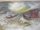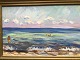 painting Beach with Boat in the dunes sign: Topkjær Olsen