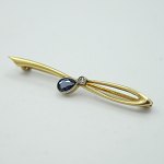 A. Dragsted; A Brooch of 14k gold, set with diamond and sapphire