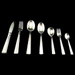 Georg Jensen, Harald Nielsen; Pyramide silver cutlery, complete for 12 persons, 107 pieces