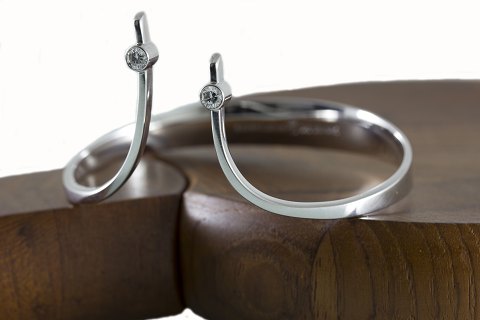 Bent Gabrielsen; An open diamond bangle in 14k white gold, set with two brillant-cut diamonds weighing 0.50 ct. Colour: Top Wesselton (F-G). Clarity: VVS. Stamped