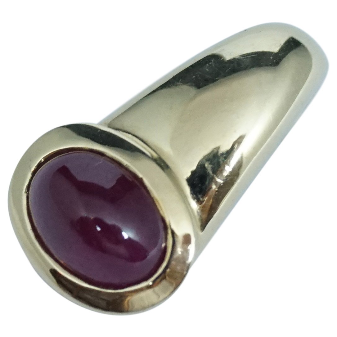 Smykkesæt af 14 kt. guld. Ring prydet med rubin og dimanter. Vedhæng prydet med rubin.