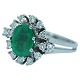 Ring af 14 kt. hvidguld, prydet med 1 oval facet slebet smaragd omkranset af 14 små brillantslebene diamanter. Brillanter i alt ca. 0,70 ct. Farve: Wesselton (H).