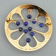 Hans Hansen; Stor rund broche af 14 kt. guld, prydet med ti runde kugler af lapis lazuli.