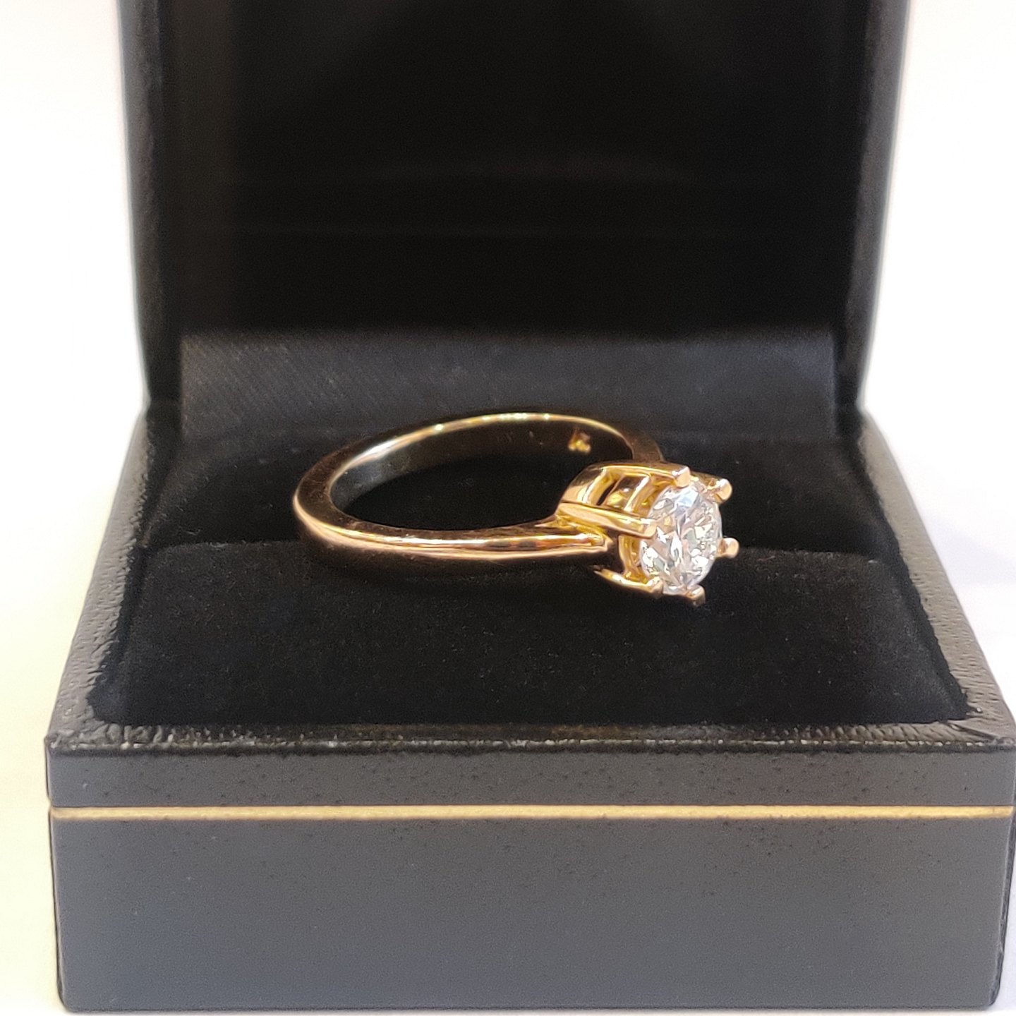 Brillantring i 14 kt. guld, prydet med en brillantsleben diamant ca. 0,85 carat. Farve: Top Wesselton (G).