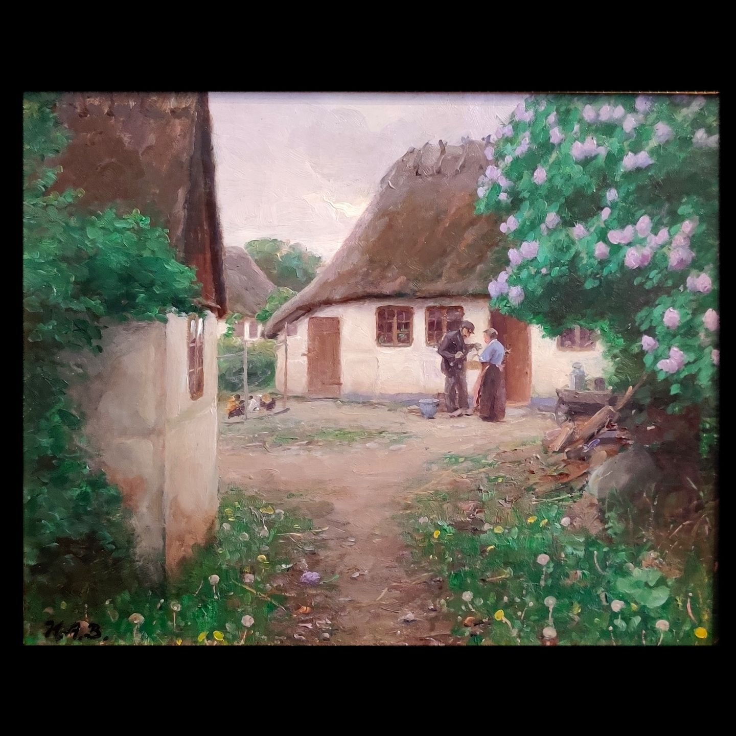 H. A. Brendekilde; Motiv fra landsby, olie på lærred
