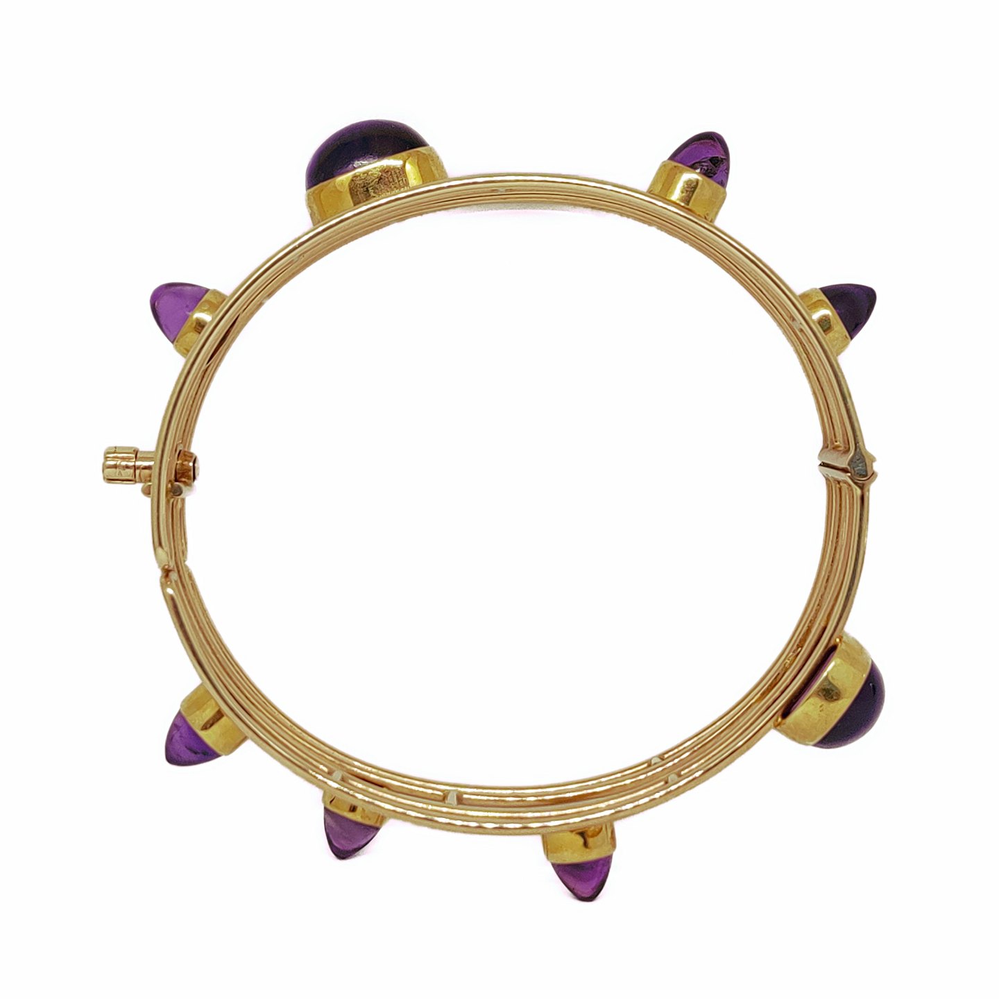 Bent Knudsen; Armring i 14 kt. guld med ametyster. Armringen kan åbnes, lukkes med skruelås.