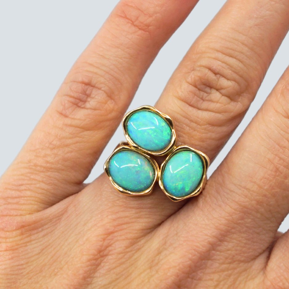 Carl Antonsen; Ring i 14 kt. guld med tre opaler.