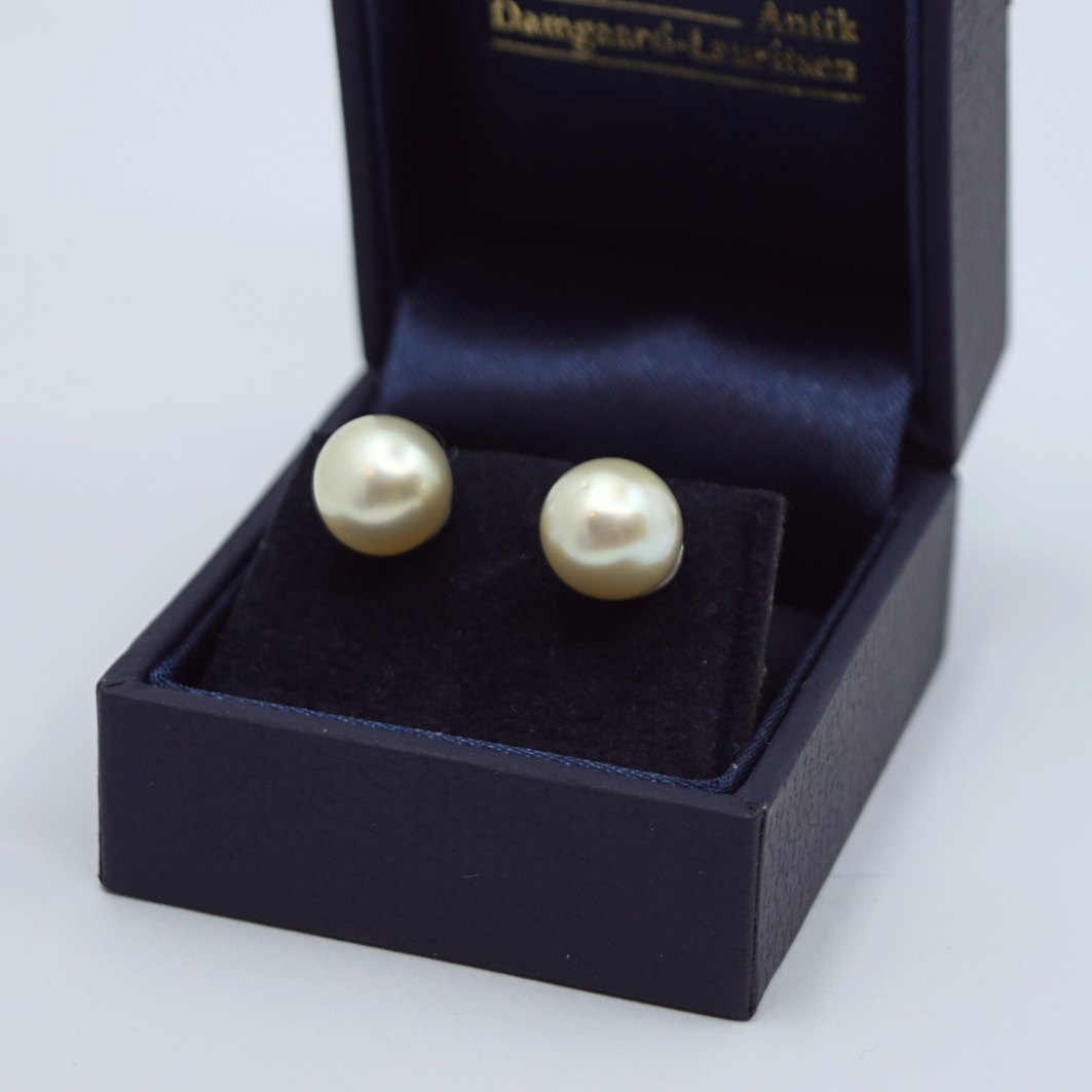 Carsten G.H. Sørensen; Par ørestikker i 18 kt. hvidguld med store South sea perler.