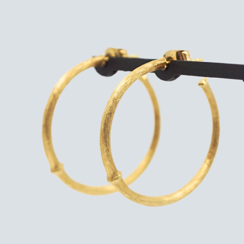 Charlotte Lynggaard for Ole Lynggaard; Nature kreoler i 18 kt. guld med satineret overflade. Nature øreringe str. Large, diameter 30 mm.