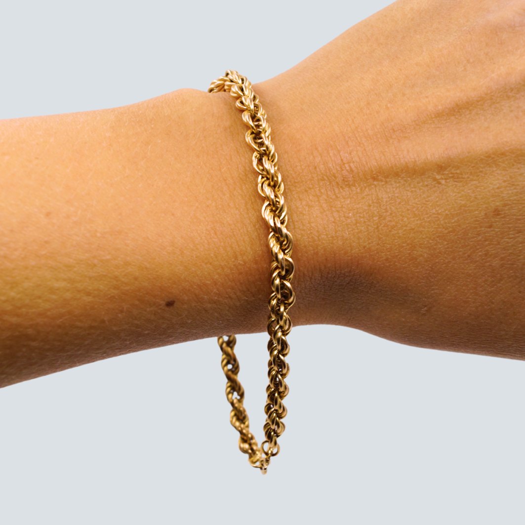 Twisted bracelet in 14k gold. Bjørn Borg chain. L. 22.5 cm. W. 5 mm. Stamped "585". Please contact us if you're looking for anything specific. What you see on our webside is just a small selection.