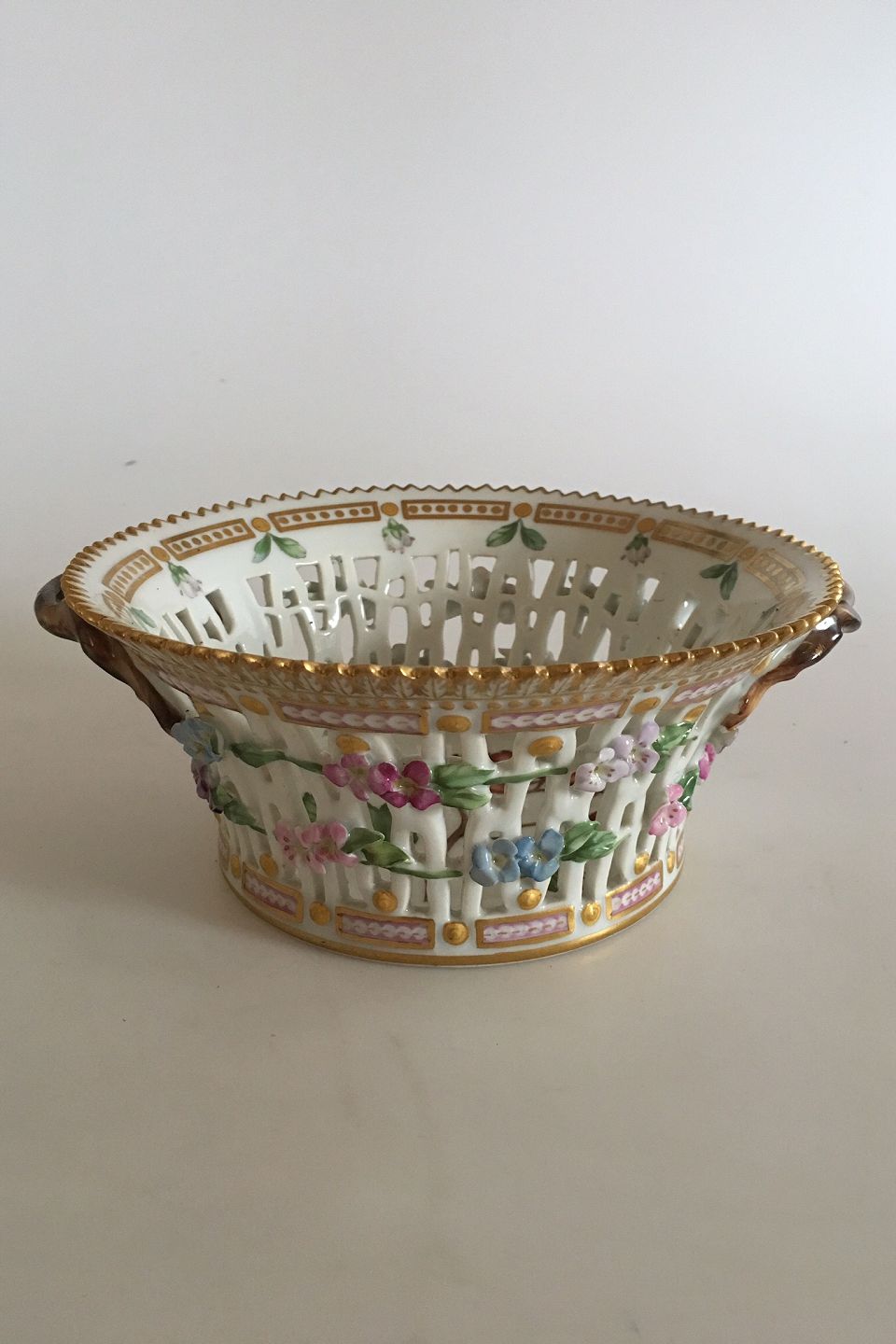 Antique Royal Copenhagen Flora Danica Fruit Basket No 3532. Measures 18,5cm and is in perfect condition. With old marks and has the nice old glaze and Green colors. Rarely seen old fruit basket. Latin name: "Sorbus scandica Fr."