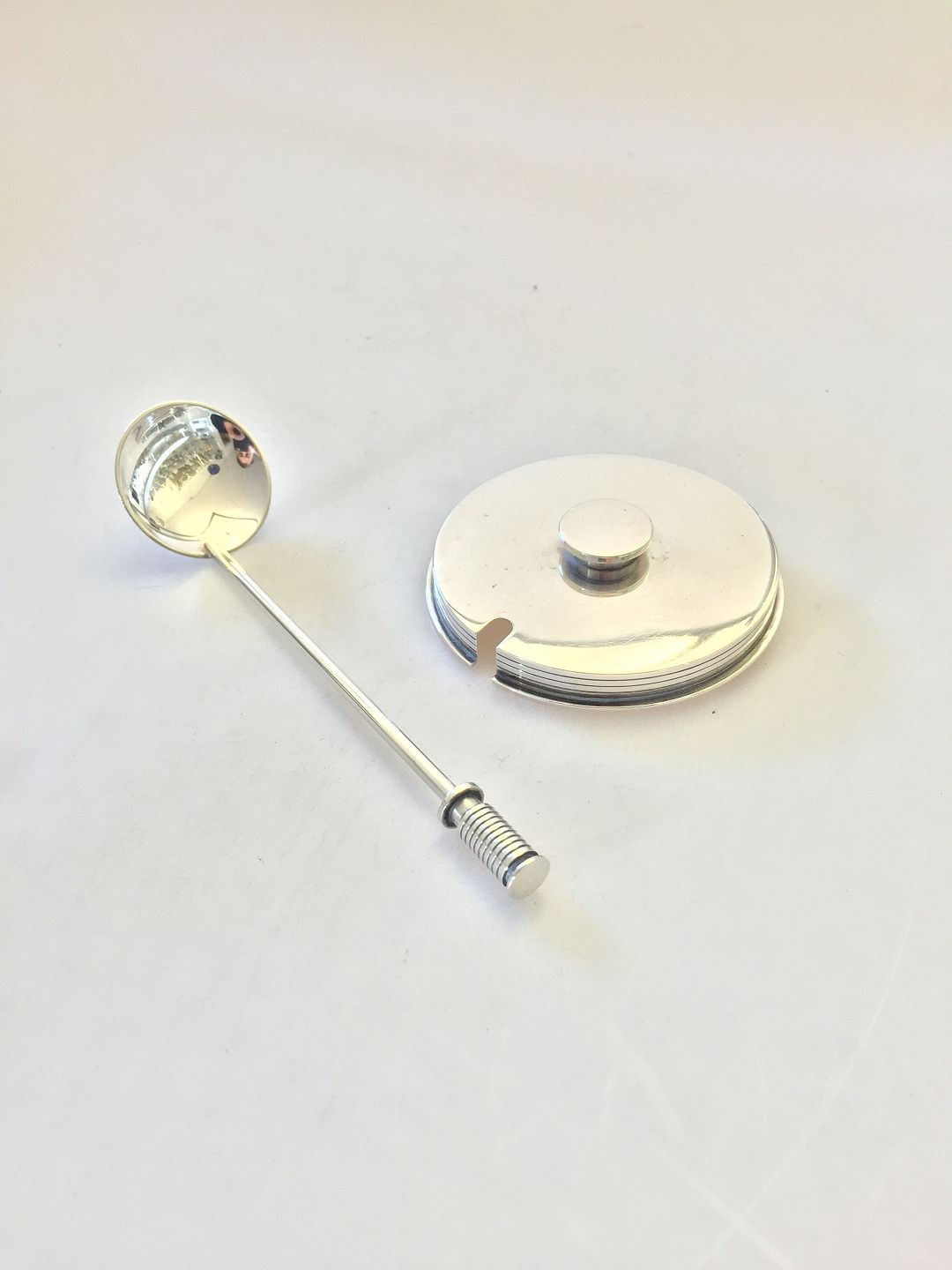 Georg Jensen Sterling Silver Lid and spoon by Sigvard Bernadotte No 510 and No 14. Lid measures 8,1cm (3 1/5") and spoon 14,5cm ( 5 7/10") and is in perfect condition.