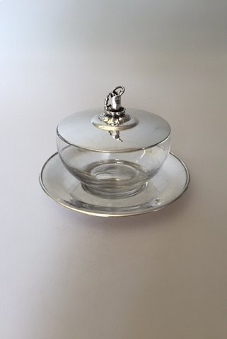 Georg Jensen Sterling Sølv og Glas Kaviar Skål med låg og underfad No 610. Fad måler 15,8cm, låg 11cm og 10,5cm høj.