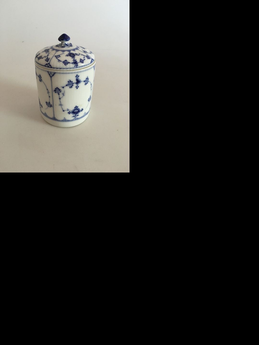 Royal Copenhagen Blue Fluted Plain Tea Caddy with Lid No 2101. Measures 11 x 8.5 cm (4 21/64" x 3 11/32"). The lid is not the original.