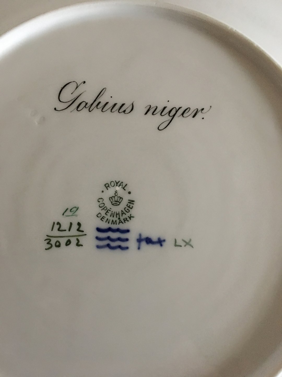 Royal Copenhagen Blue Fish Plate with Gold No 1212/3002. With Gobius Niger. 23 cm (9 1/16"). In perfect condition,