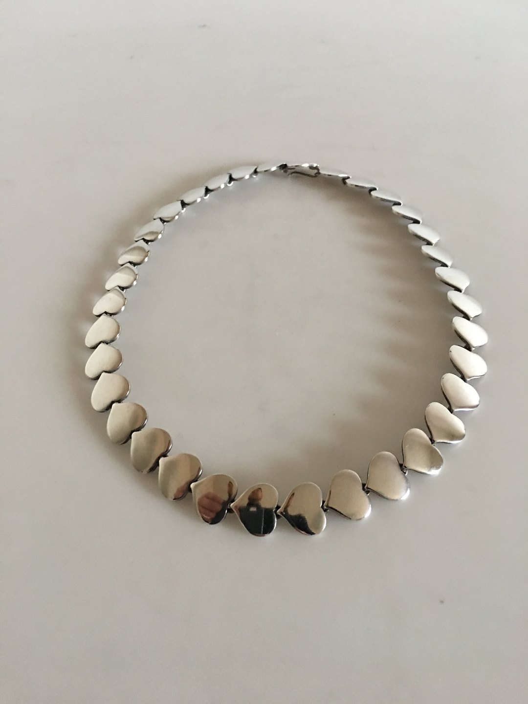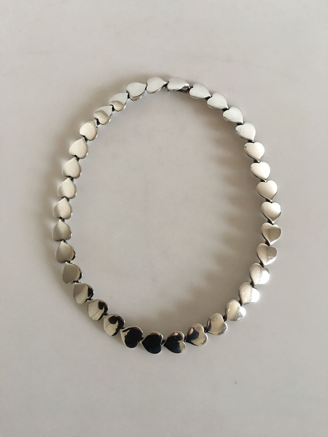 Hans Hansen Sterling Silver Heart Necklace. 41 cm L (16 9/64"). Weighs 61 grams (2.15 oz).