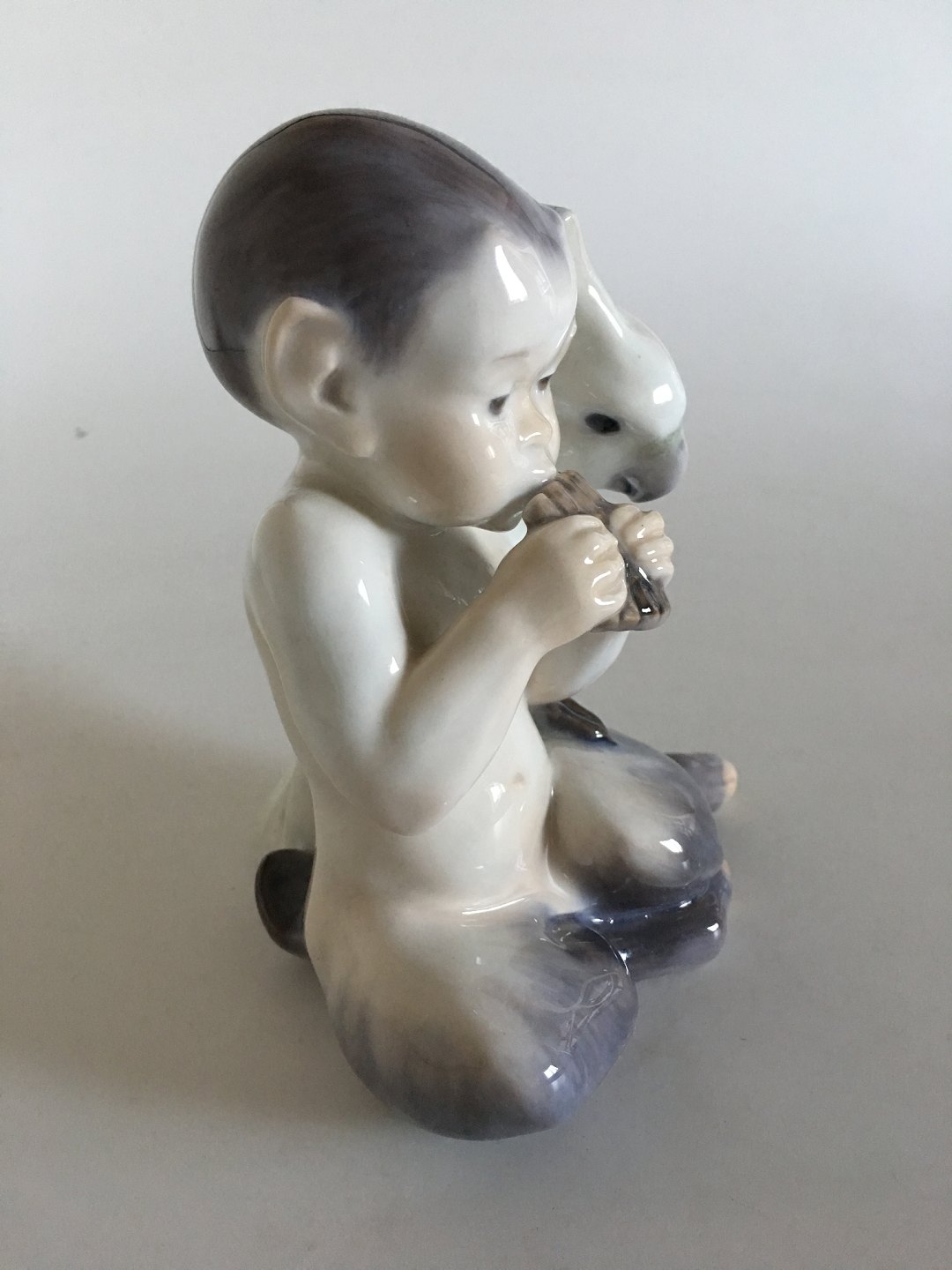 Royal Copenhagen Faun with Parrot No 2424. 1st Quality. In perfect condition. 16.5 cm H (6 1/2"). 14 cm W (5 33/64").
