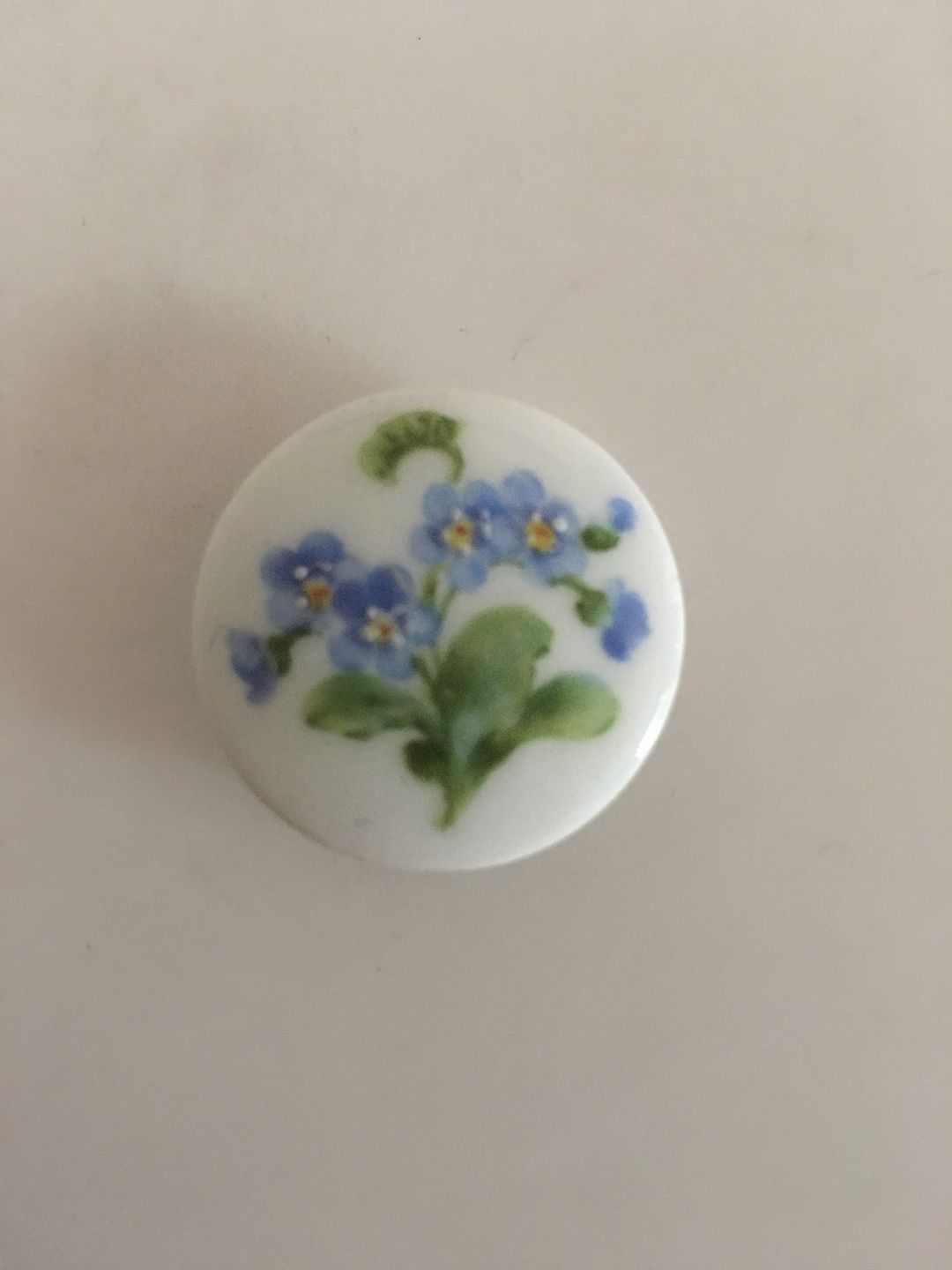 Royal Copenhagen Porcelænsknap med Håndmalet Blomstermotiv. 2 cm dia.