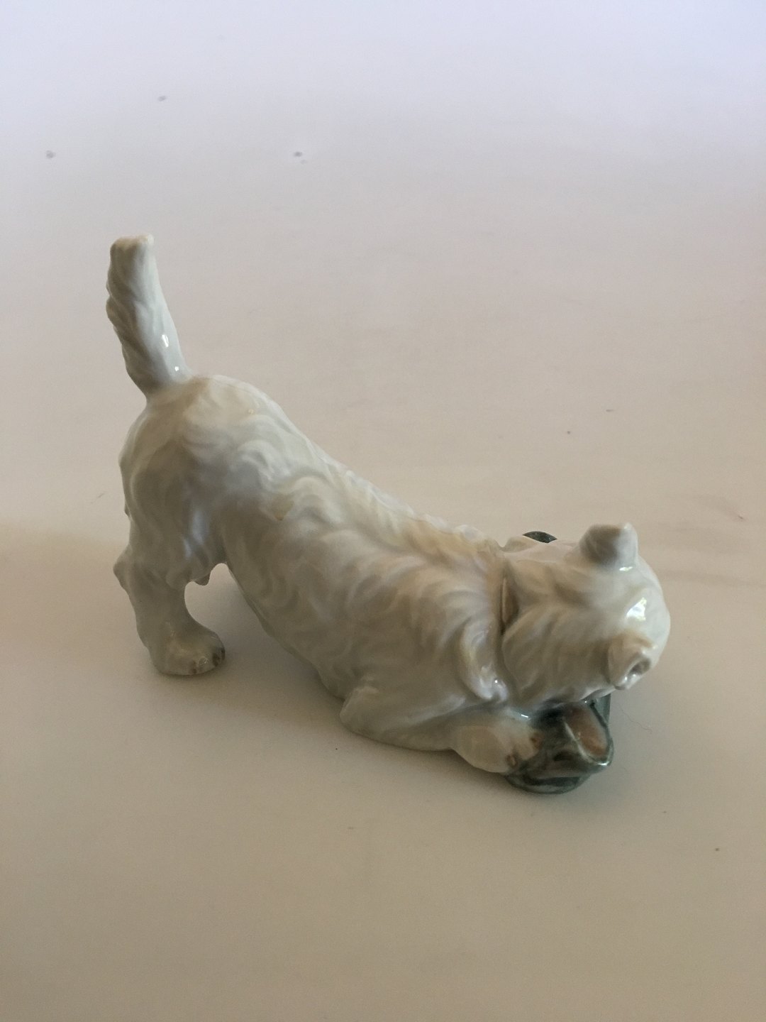 Royal Copenhagen Figurine Terrier with Slipper No 3476. Measures 9 cm / 3 35/64 in. x 11 cm / 4 21/64 in. In nice whole condition.