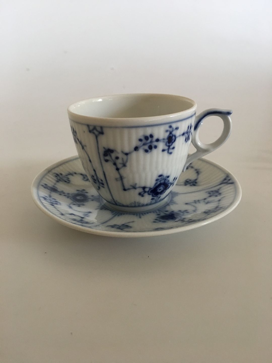 Royal Copenhagen Blue Fluted Plain Espresso Cup with Saucer No. 298. 5.3 cm H. 6.4 cm diameter. 1st Quality